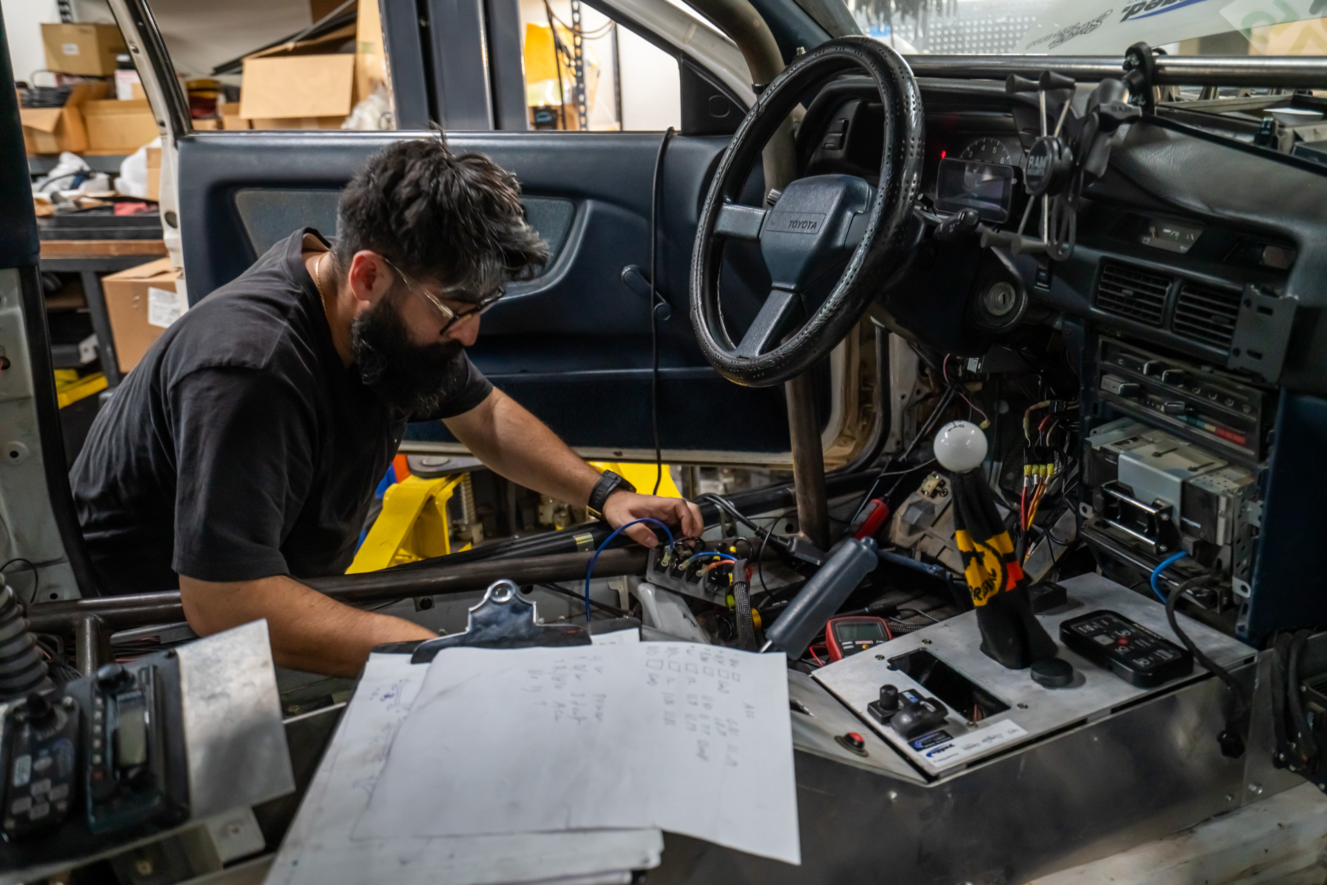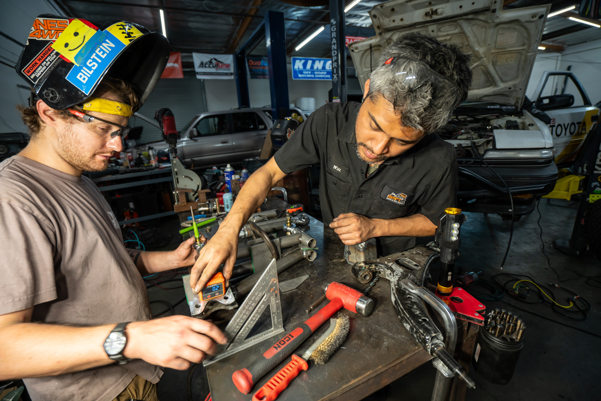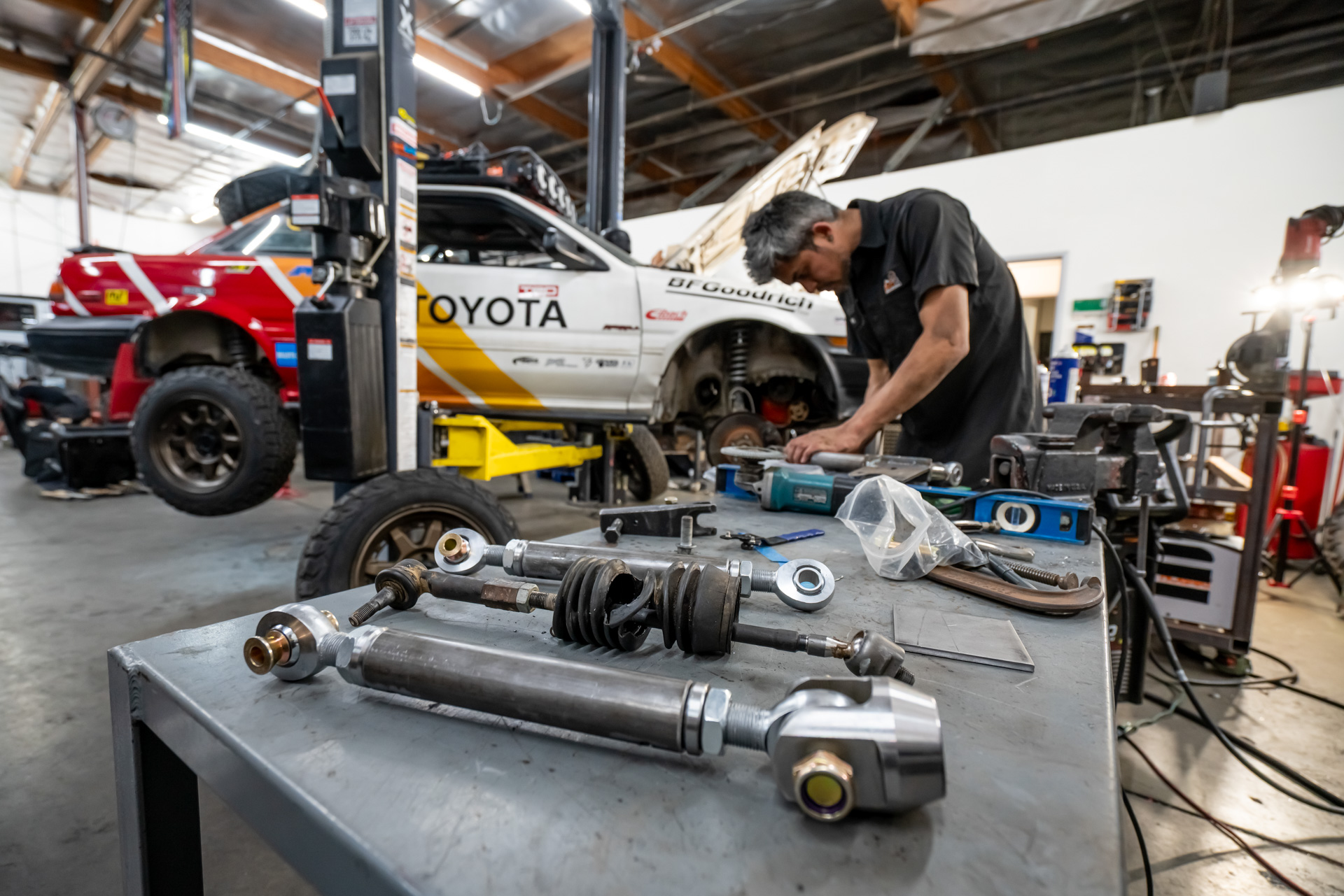 “We had a long weekend and typical 11th-hour stuff—like not anticipating fabricating custom control arms and tie-rods would take 4 days,” Randy told me over email when he shared his plans to go racing. Here are some pictures from that last-minute wrenching weekend, shot by Alejandra Valencia (@avathecreative.visuals):