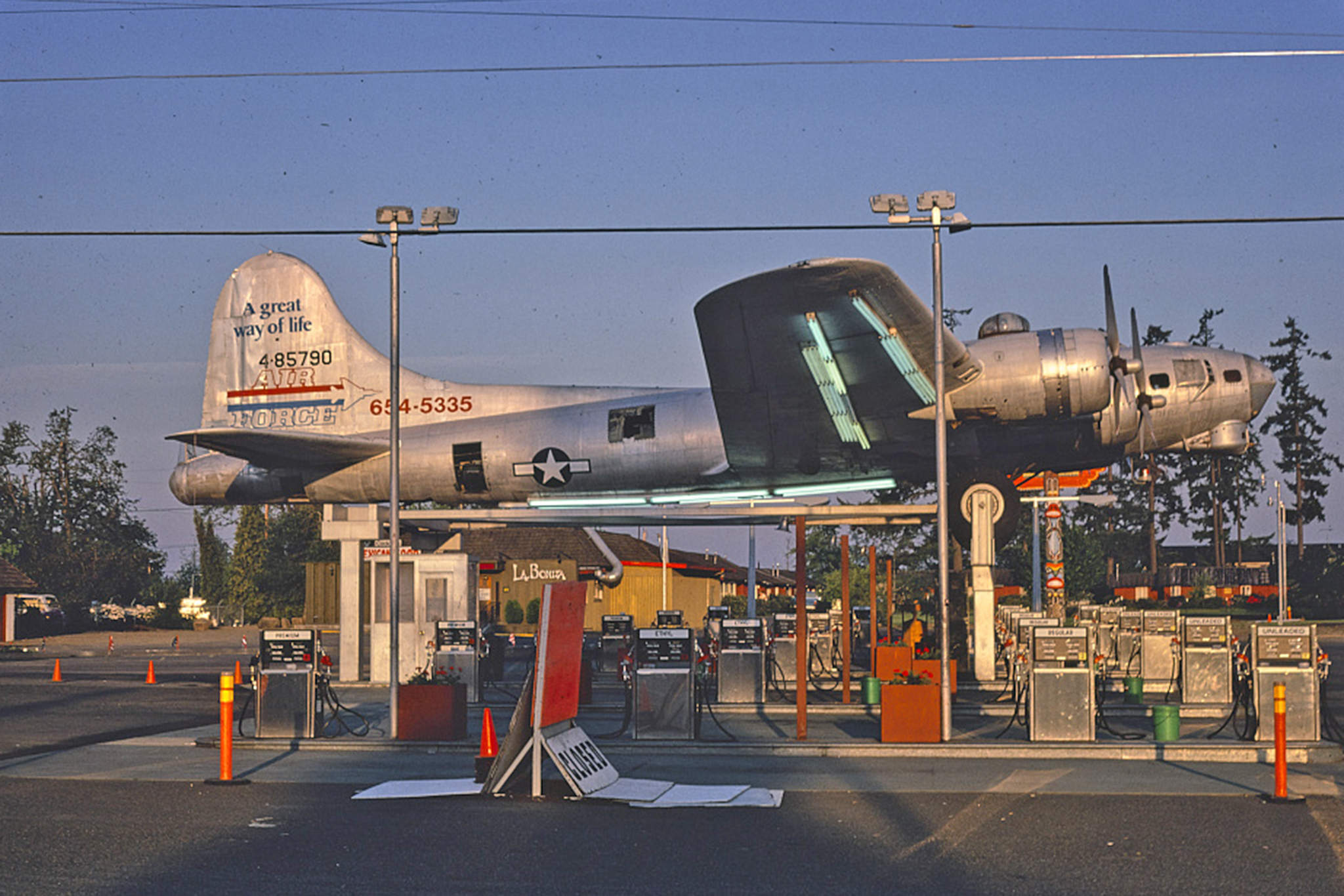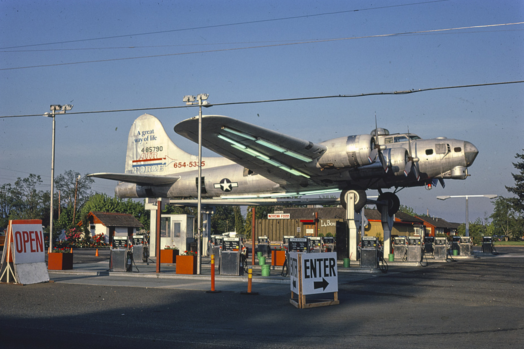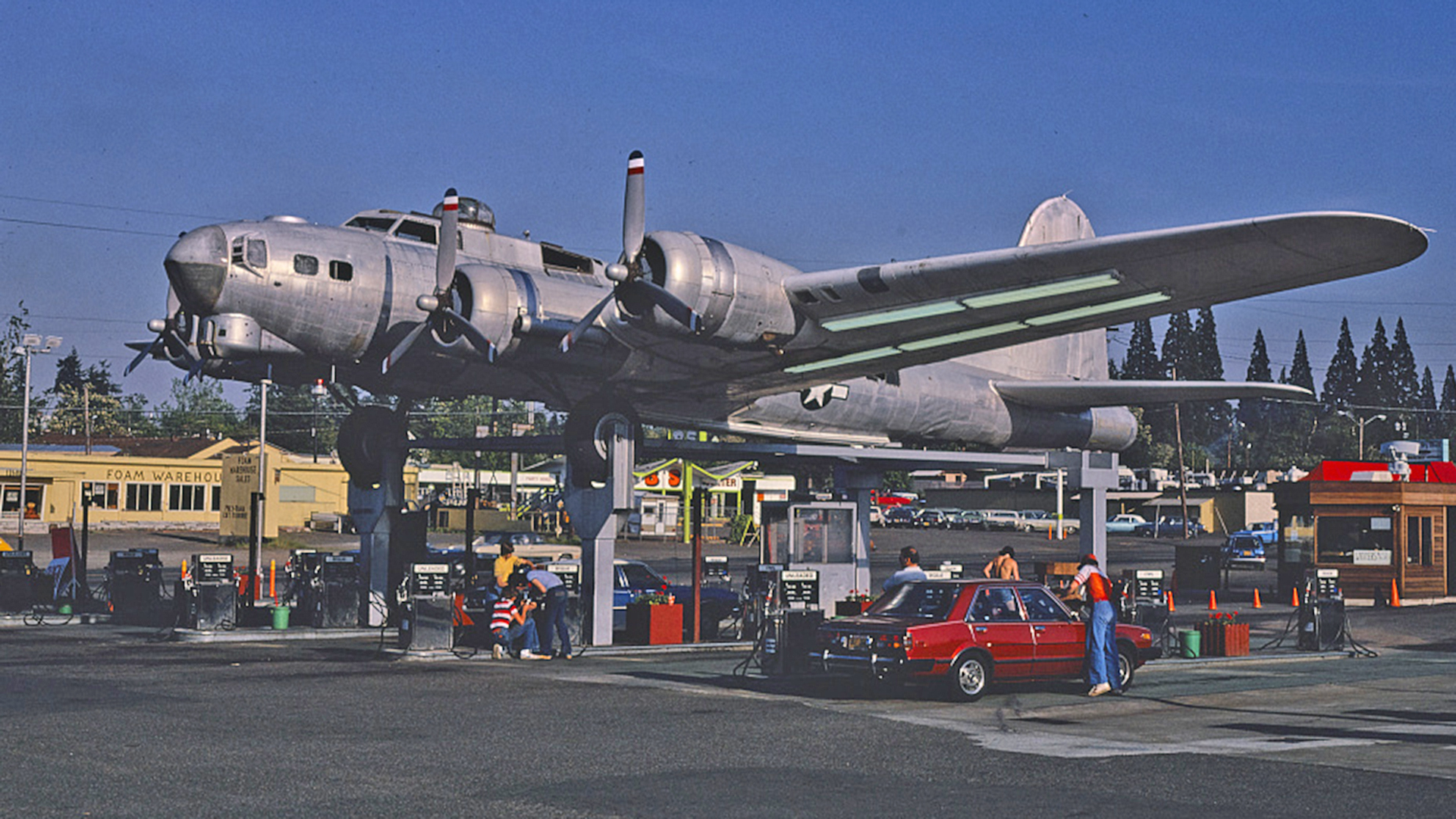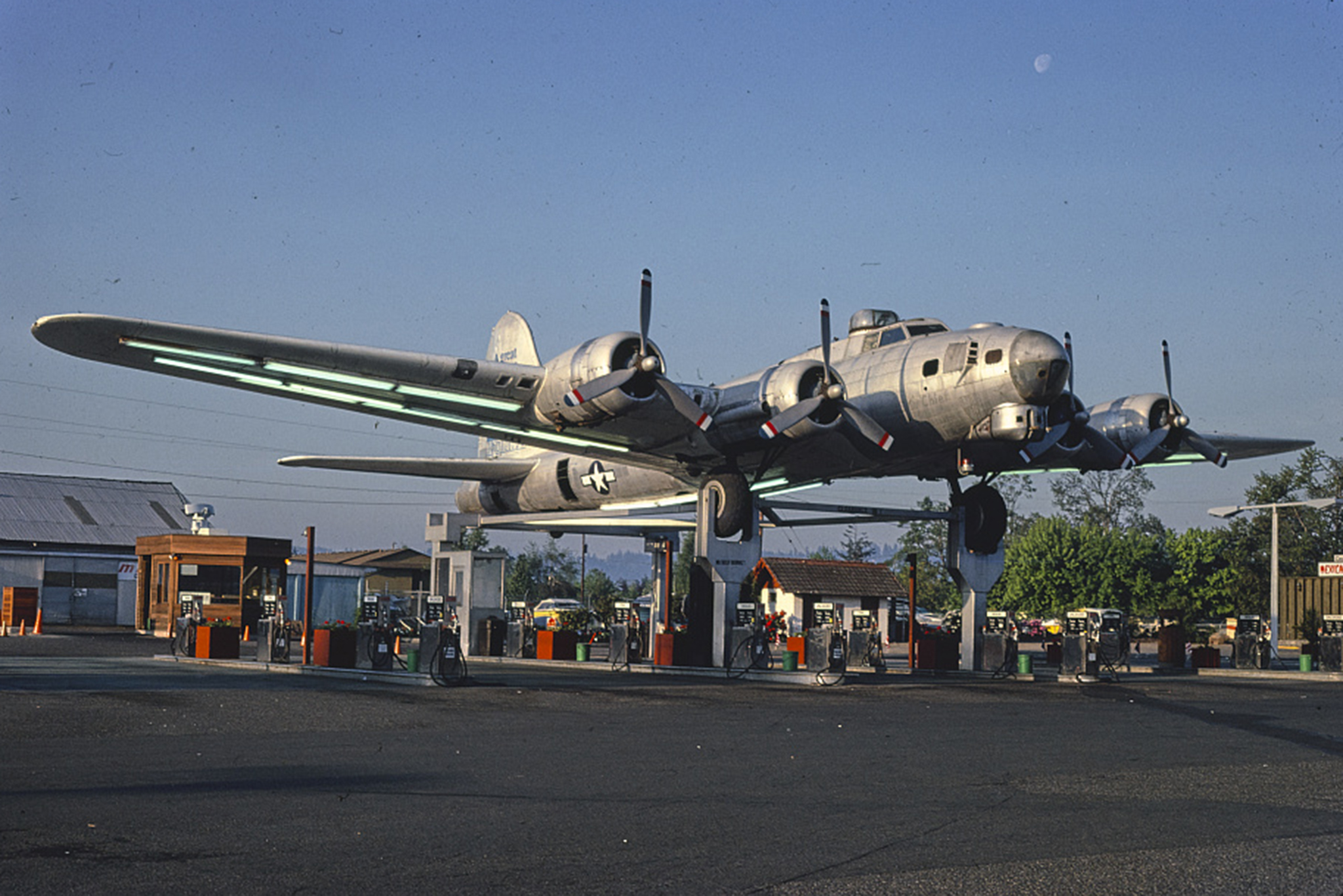 A restoration project is currently underway to restore an iconic Oregon landmark. For almost 70 years, a decommissioned WWII B-17 bomber sat atop a 48-pump gas station along Highway 99E in Milwaukie, Oregon. How it got there, though, is one helluva story.