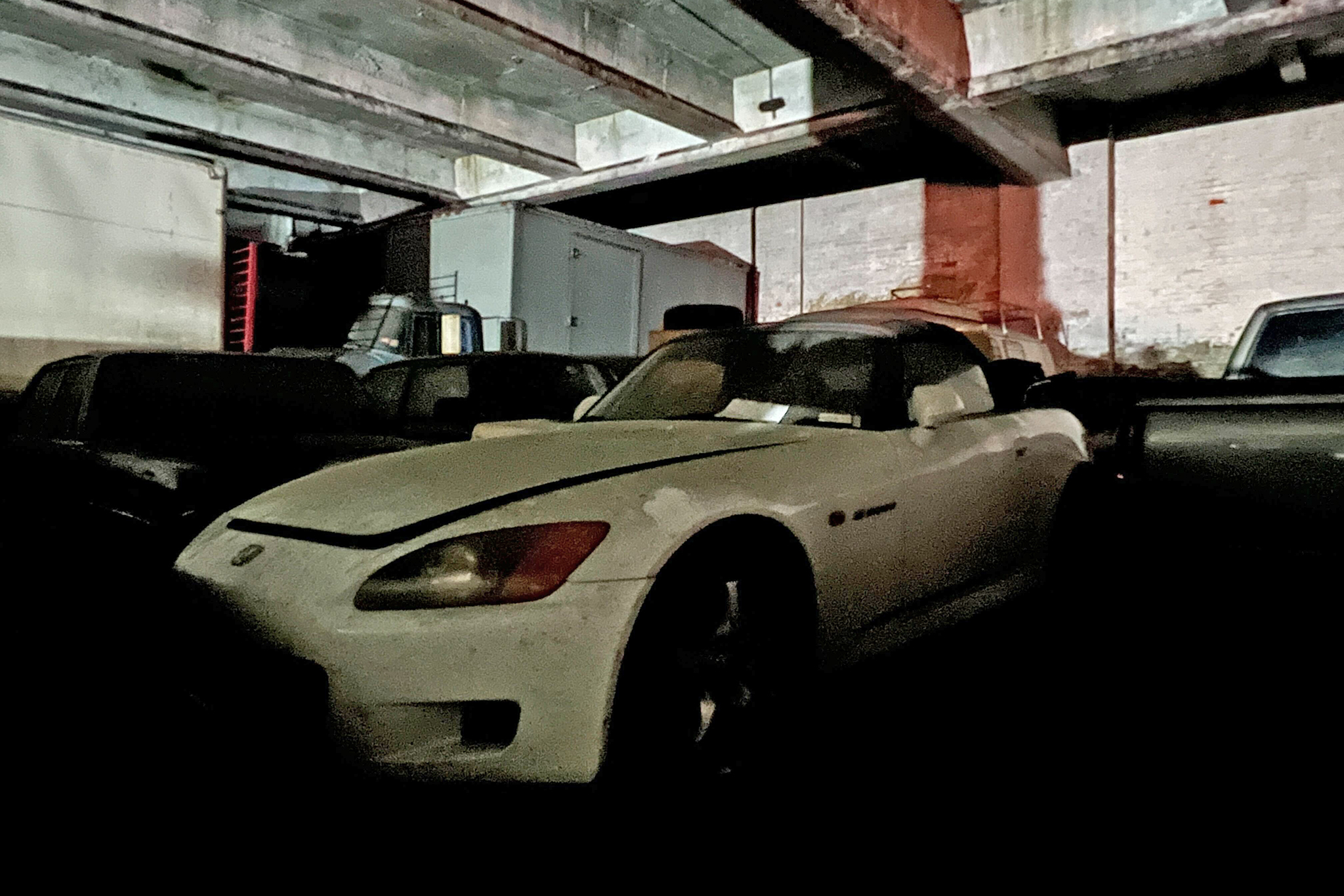 Chris was called to help a customer, so Yves showed me around the ground floor himself. We passed another ‘59 Cadillac, this one a desirable convertible model in baby blue. A ‘49 Packard, a sixties Rover, and a pile of blankets covering what I’m told is a ‘55 Chevy line the back wall. There were too many other cars to list. Then, we came to the most eclectic grouping imaginable. A one-year-only Bricklin SV-1 faced a grimy AP1 Honda S2000, which in turn blocked in an early longhood Porsche 911 (a ‘68 Targa, I’m told), a VW Microbus, and another W108 Mercedes. Wedged behind the grouping was a seriously cool ‘50s Ford box truck. I asked about the 911, and Yves laughed and said, “That’s my daughter’s car. You’d have to ask her about selling it.”