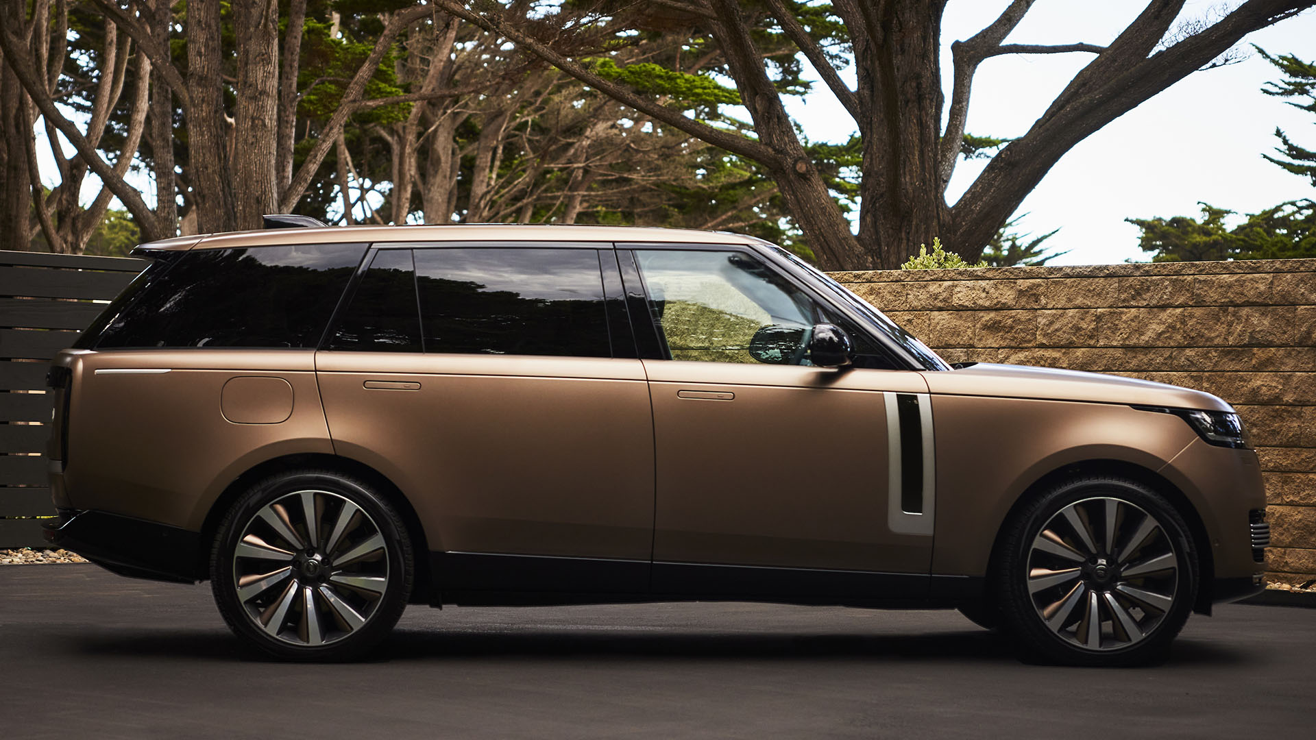 Built on the Long Wheelbase version of the SUV, the SV Carmel Edition is painted Bespoke Satin Bronze on the outside and wears 23-inch Dark Grey Gloss wheels that have bronze detailing to match the body. There are “Carmel Edition” stamped treadplates and SV Bespoke puddle lights that light up the ground at night. That ground is better off after having you, the owner of the Range Rover SV Carmel Edition, step on it.