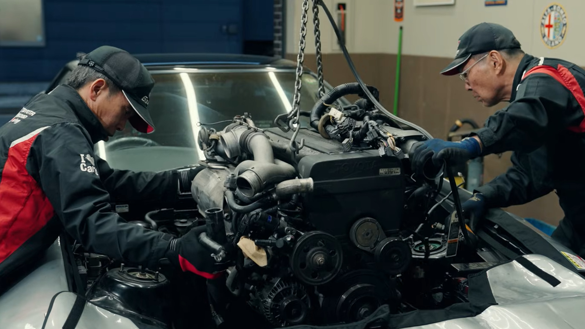 And that’s a comprehensive job in and of itself. We see the Supra’s twin-turbo I6 and transmission get removed for tear-down, exposing the rest of the engine bay and under-body for cleanup and restoration. Everything from the powertrain’s internal components to the hoses for the fuel, cooling and emissions systems will be inspected, refreshed, restored or replaced as necessary.