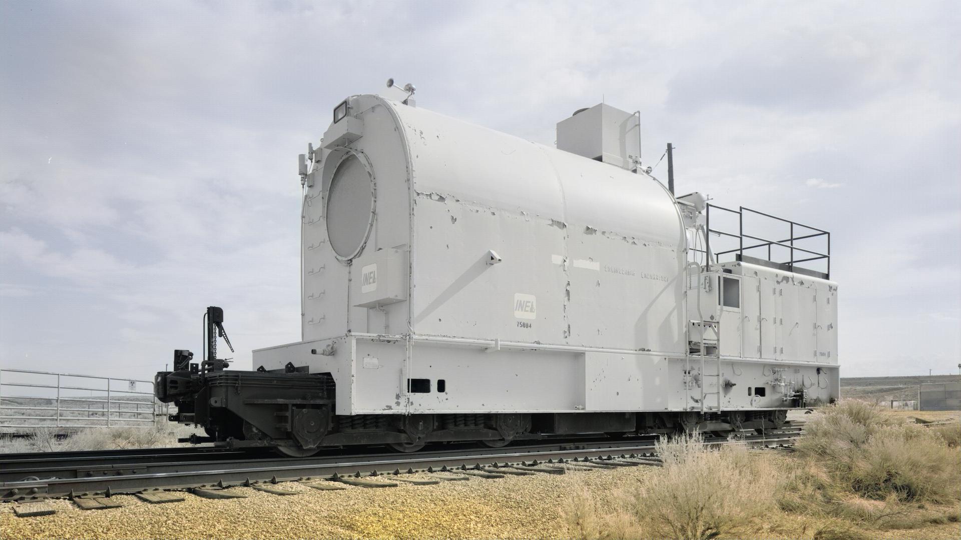 The locomotive’s engine, which doesn’t appear to have had an official name, was constructed in June of 1954, according to an Idaho Magazine story written by Thornton Waite, a railroad historian and former employee of the INL. It reportedly measured in at only 45 feet long, but weighed the better part of 215 tons; that’s about the weight of an EMD SD70 freight locomotive but at less than two-thirds the length. According to Waite, much of the added mass came from the thick radiation shielding surrounding its cab, taking the form of an elongated, semicircular enclosure made largely of lead and partially filled with water. Leaded glass viewports on either end—four feet thick and filled with oil per a Reddit post—gave a modicum of visibility to its operators, who entered and exited via a hatch in the floor, allowing them to climb down into tunnels to avoid radiation emitted by tests conducted above.