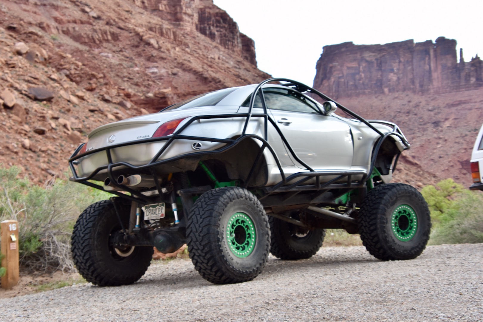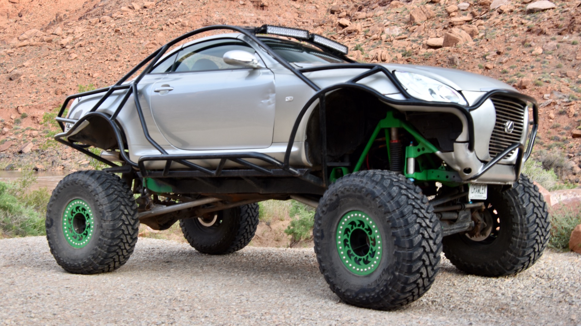 Once deemed the worst car in history by BBC’s Top Gear, the Lexus SC430 is completely deserving of that title. Its poor ride makes it an awful tourer, while its loose seats, sloppy steering, and excessive curb weight ruin it as a performance car. On top of all that, it was damn expensive. However, even mediocre cars can be improved by a lift and a cage, the more dramatic the better, and there are few transformations more dramatic than that exemplified by the rock-crawling Lexus SC430 I found in Moab, Utah.