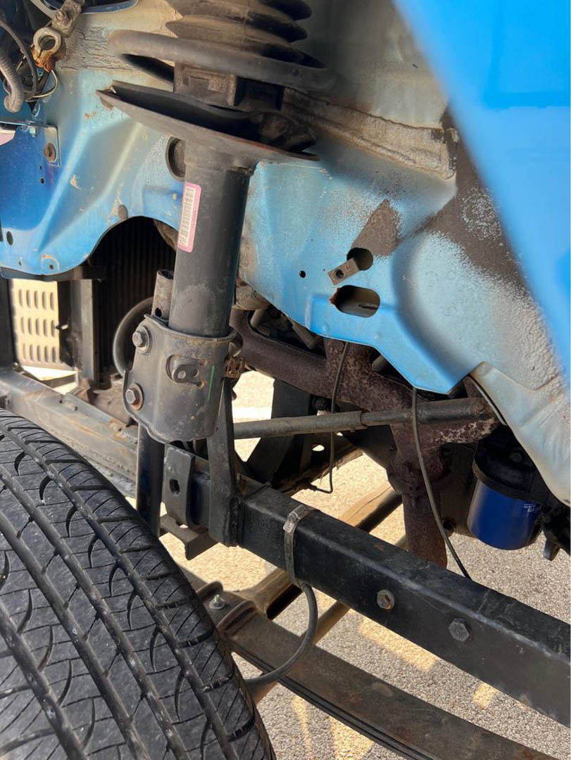 Suspension-wise, it’s still running MacPherson-style struts up front, with the bottom of the strut tower seemingly connected to the ladder frame via two rods. How the rear is connected to the chassis is unclear. It’s also riding on steelies with extra tall sidewall tires but I fear how this thing rides, given its mysterious suspension setup and wobbly looks. There’s also a full-sized spare tire underneath trunk.