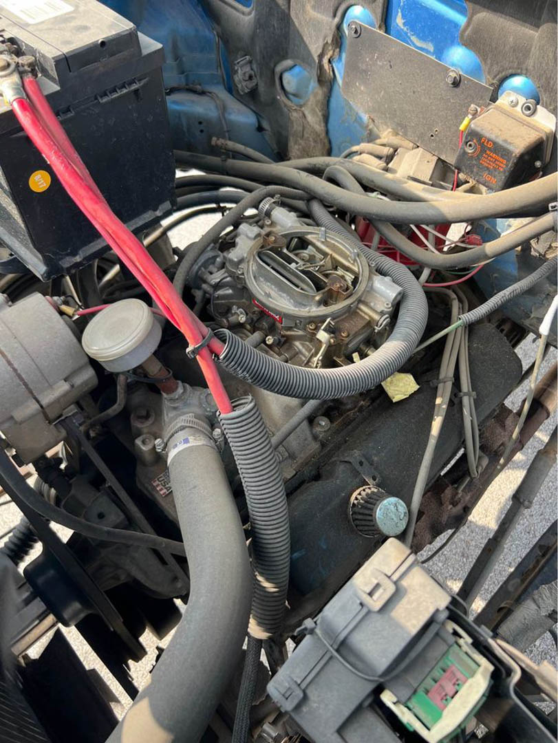 The seller apparently took the wheels off of a Surf Blue PT Cruiser and simply bolted and welded it to a ladder frame chassis. They then stuffed in a Chevy 305 carbureted V8 and paired that with a Chevy 700R4 four-speed automatic transmission. Power is sent to all four wheels, via a Ford rear end and a ’60s Dodge front end.