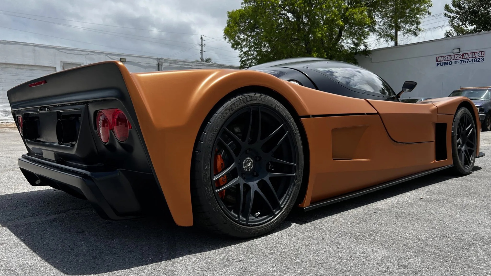 But the styling? It’s fairly generic, which explains why it looks like it was beamed from the Rockstar Games design studio. It’s almost like if a Maserati MC12 had a kid with a 24 Hours of Le Mans prototype. The example listed on Bring a Trailer wears a copper-colored wrap that makes it even more GTA-like. The background is perfect: It makes the listing’s main image look like a screenshot from the game. I can picture myself driving the SL-C to that parking lot and stepping into the old RV behind it to grab a hidden package before going to the safehouse.