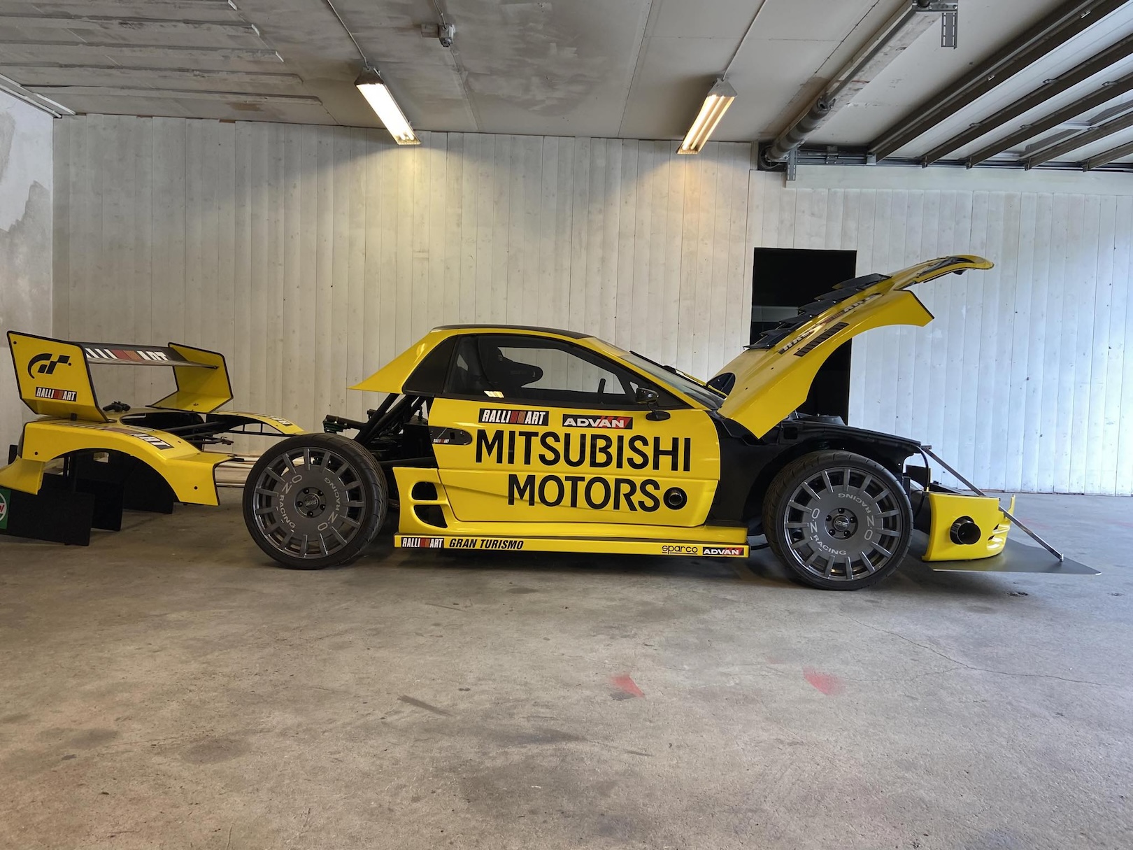 Gone is the interior and the entire rear of the unibody, replaced by a roll cage and a tubular rear frame. It now features four-corner Tein suspension, a handmade body, and enormous fixed aero that looks ready for Pikes Peak. All in all, Haalands thinks he can cut a whole fifth of the 3000GT’s weight, reaching a race-ready weight of under 3,000 pounds. But that doesn’t mean the complication is going away—it’ll just be a bit different.
