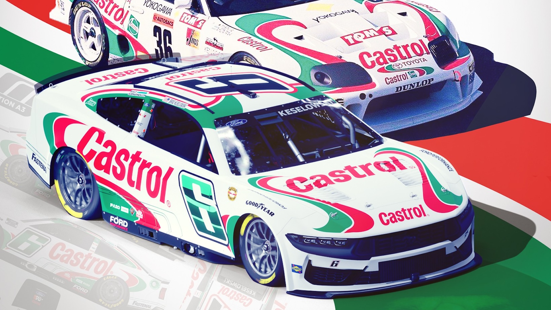 The Castrol tribute will appear on Brad Keselowski’s No. 6 Roush Fenway Keselowski Racing Mustang. RFK Racing will adopt the design for NASCAR’s Throwback Weekend at Darlington Raceway, which takes place May 10 through 12. The livery was chosen by Keselowski himself over some competing Castrol classics, which would’ve paid tribute to the historic John Force Funny Car or Casey Atwood stock car. While the Toyota Camry body style current races in the Cup Series, RFK uses the Ford Mustang’s body, and it’s there where the Castrol livery will appear.