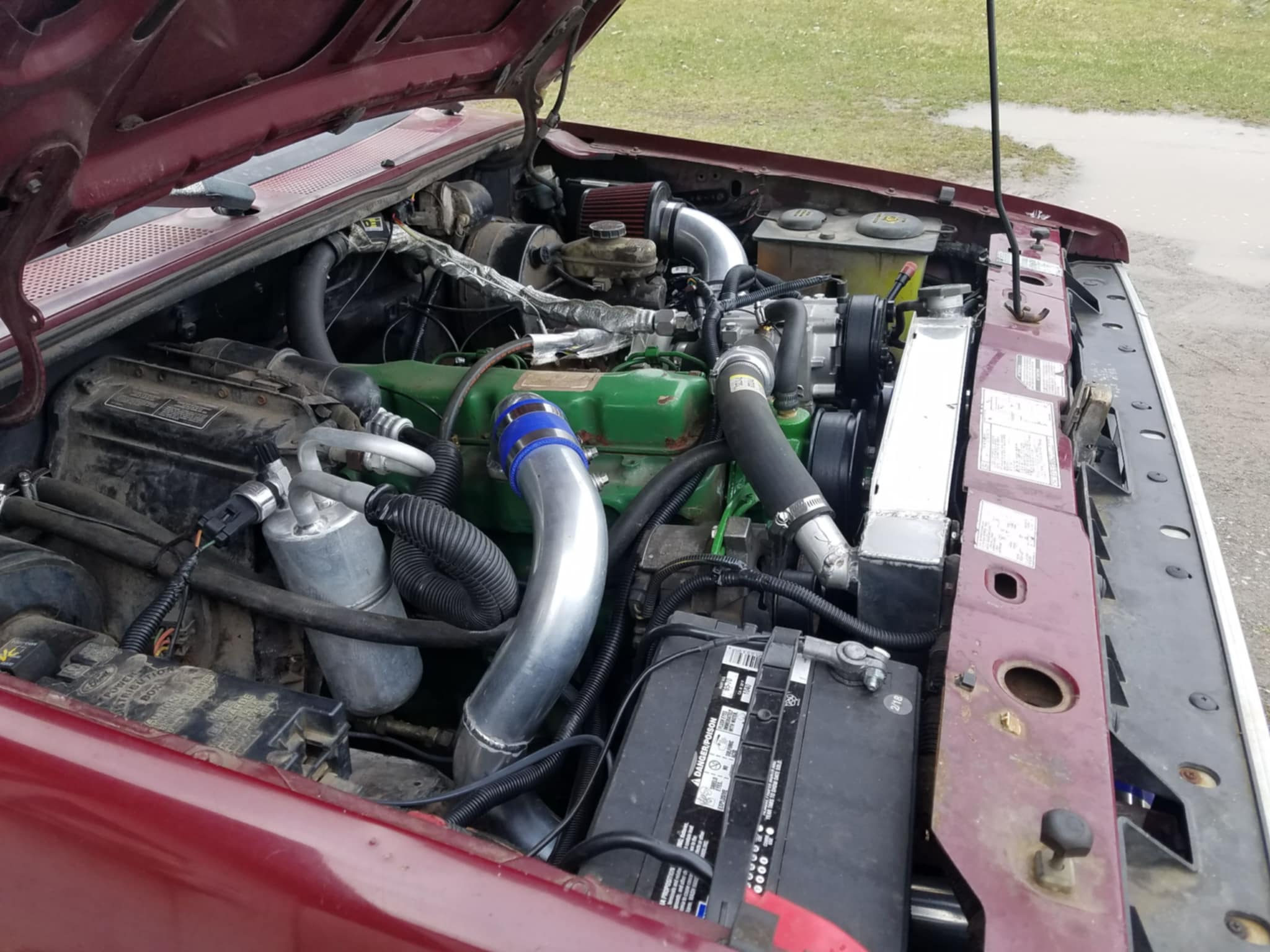 Jones decided any four-cylinder model would do, so he landed on a 4039T out of an industrial air compressor. That works out to 3.9 liters or 239 cubic inches, and a turbo helps it make 120 horsepower in factory form. The engine had 8,800 hours on it when he bought it, but he told me, “I didn’t care. They run forever.”