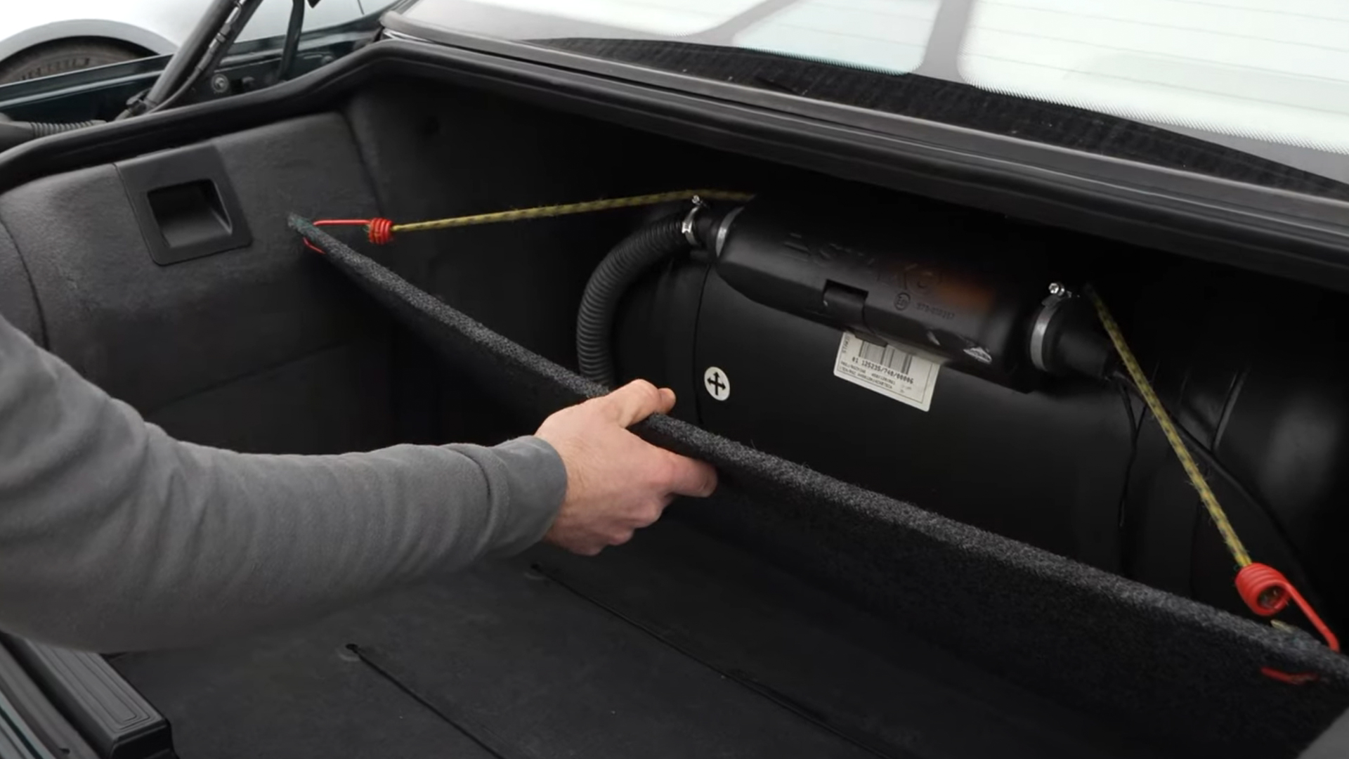 LPG is essentially just propane gas, sort of like the same stuff you use to fire up your Weber grill in the summer. So when Sreten finally got to the dealership and popped the hood on the ultra-rare Alpina, it had all sorts of confusing LPG injectors, hoses, and brackets mounted to the intake manifold. Frustratingly, that also ruined the beautiful Alpina manifold, which had the brand’s signature blue and green color scheme. Those hoses ran to the trunk, where a massive LPG gas tank was hidden behind a false wall, cutting off most of the available trunk space. This entire conversion was a crime against the automotive world.