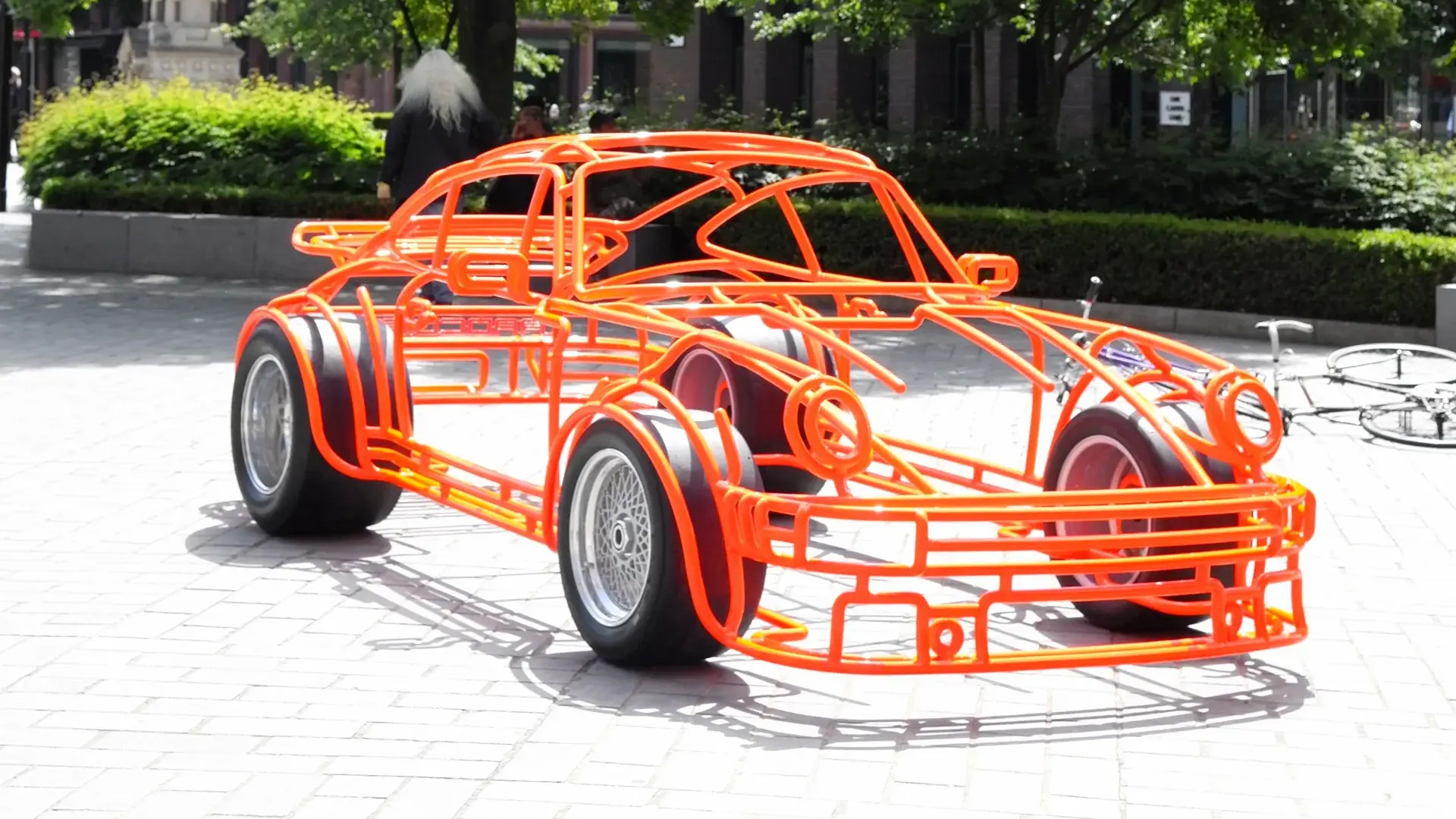 Now, some of Radcliffe’s sculptures actually run and drive, but not this one. He’s made several dune buggy-type vehicles from tubular steel structures that are road-legal in the UK. This tubed 934 might be able to roll if you push it, but that’s about it.