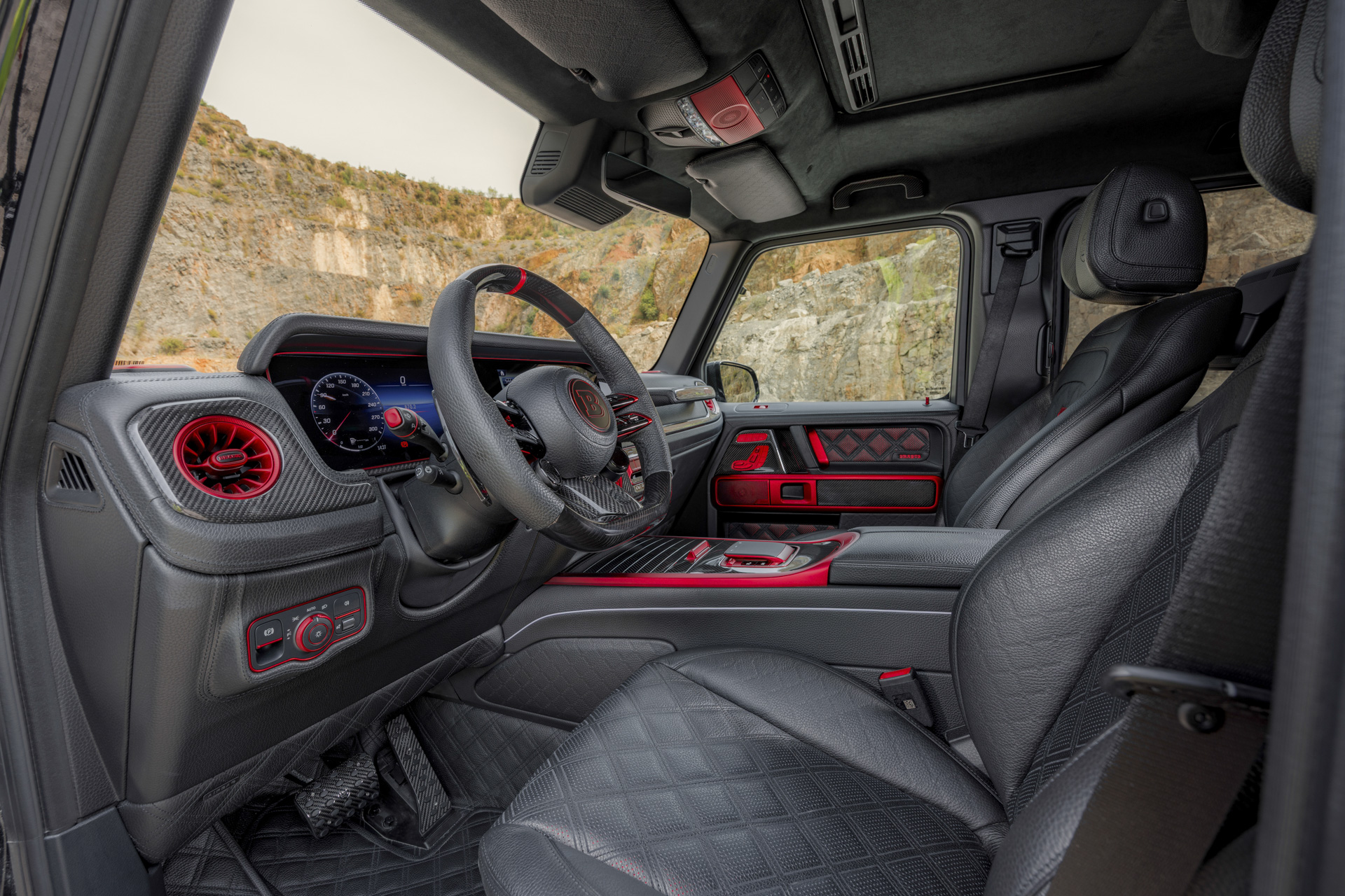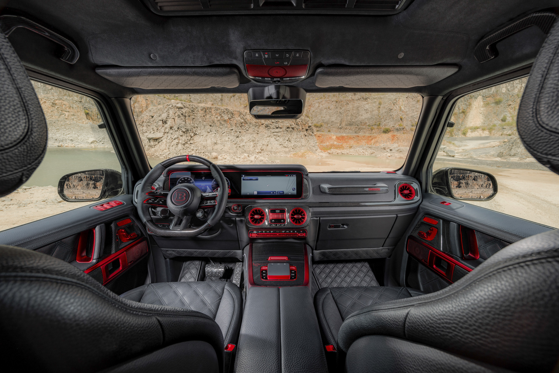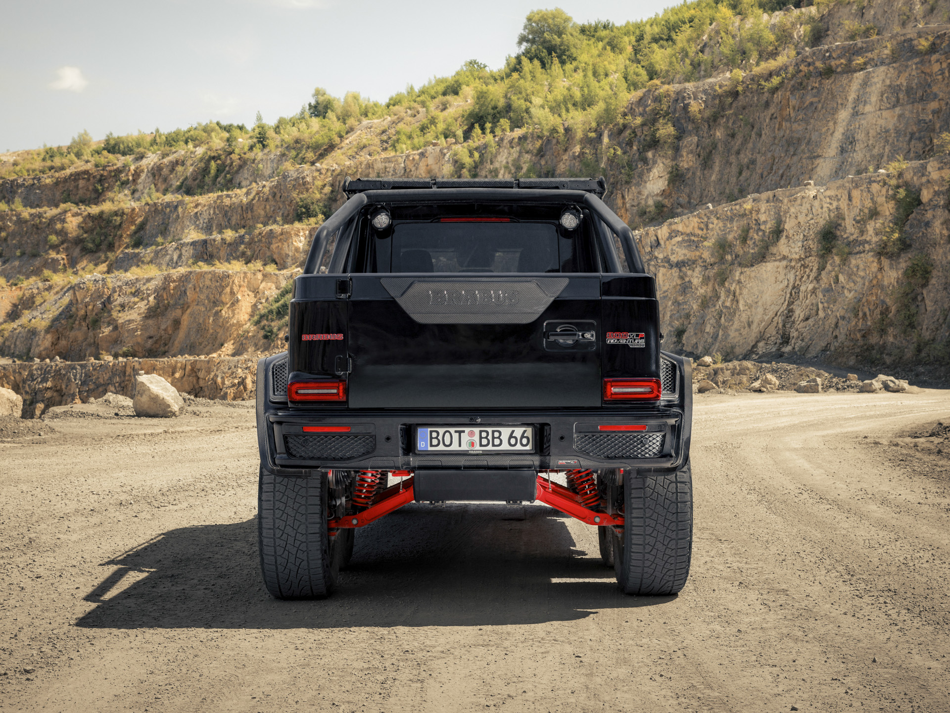 Spec-wise, Brabus’ new six-wheeled G claims 800 horsepower and about 737 lb-ft of torque. Still, due to its gigantic tires, portal axle setup, and monolithic air displacement, it trots from 0 to 62 mph in a relatively modest 5.8 seconds and is electronically limited to 130 mph. I would not want to be in this thing at triple-digit speeds at all—with 18.5 inches of ground clearance, the slightest swerve at highway speeds would be terrifying.