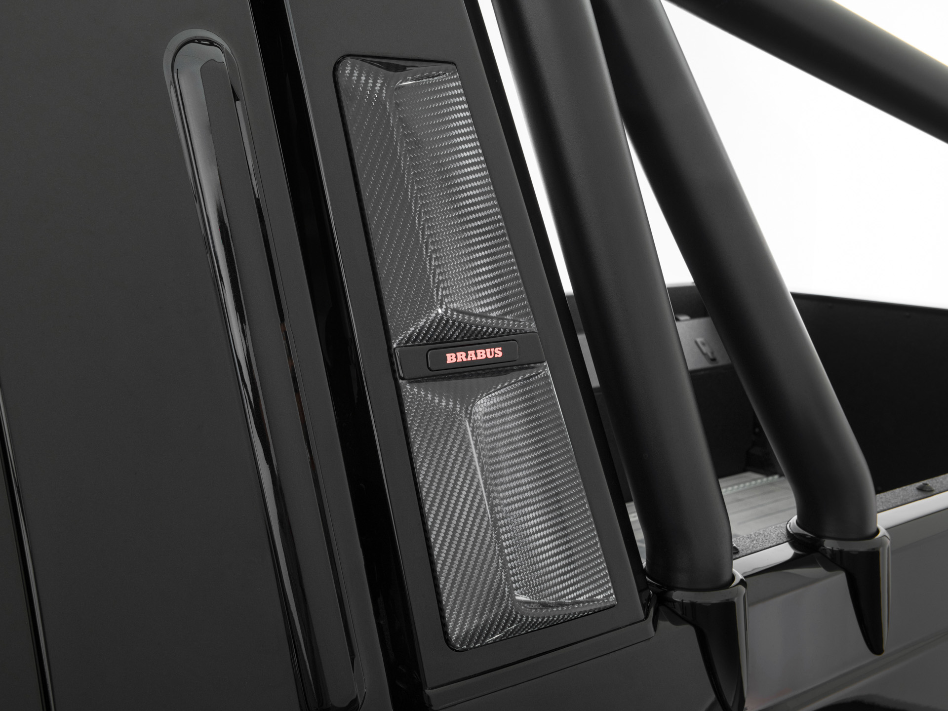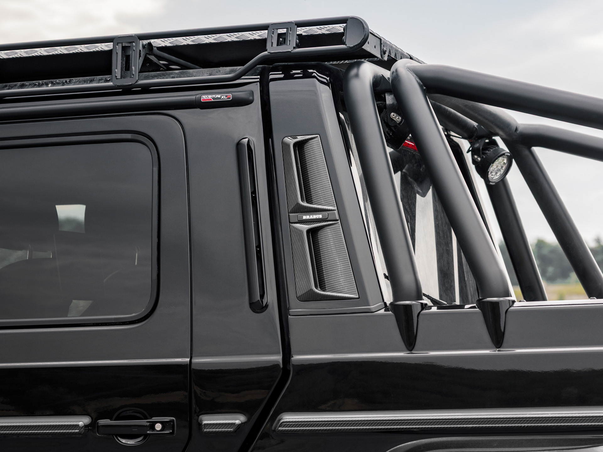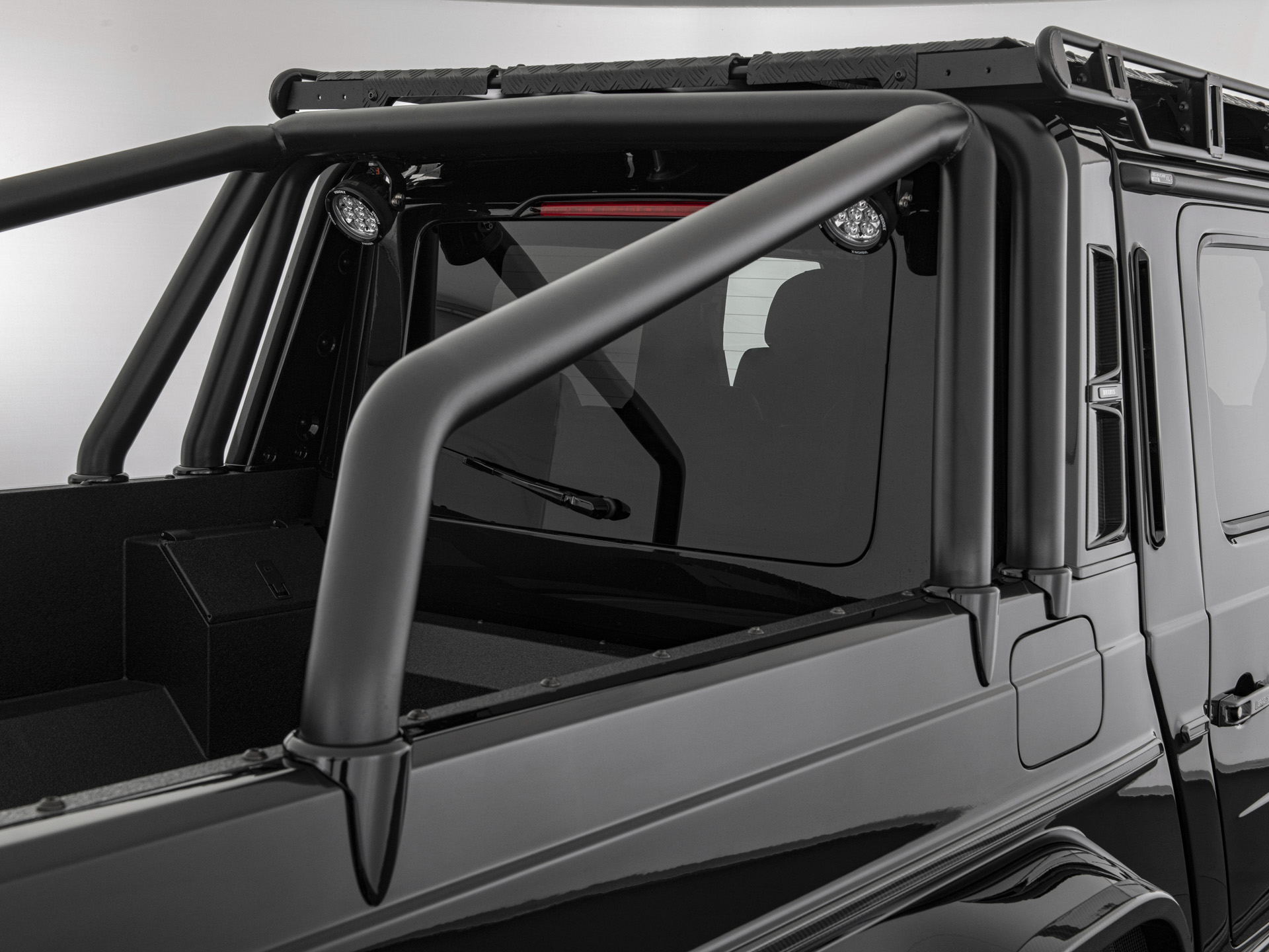 I kind of like the accommodations Brabus made to have the roll bar over the bed integrate neatly with the bedsides. It almost looks like it’s held in place by giant cupholders—I’ve never seen a custom truck use quite the same idea. It’s similar to the standard 6×6, but not exactly. Almost looks nautical.