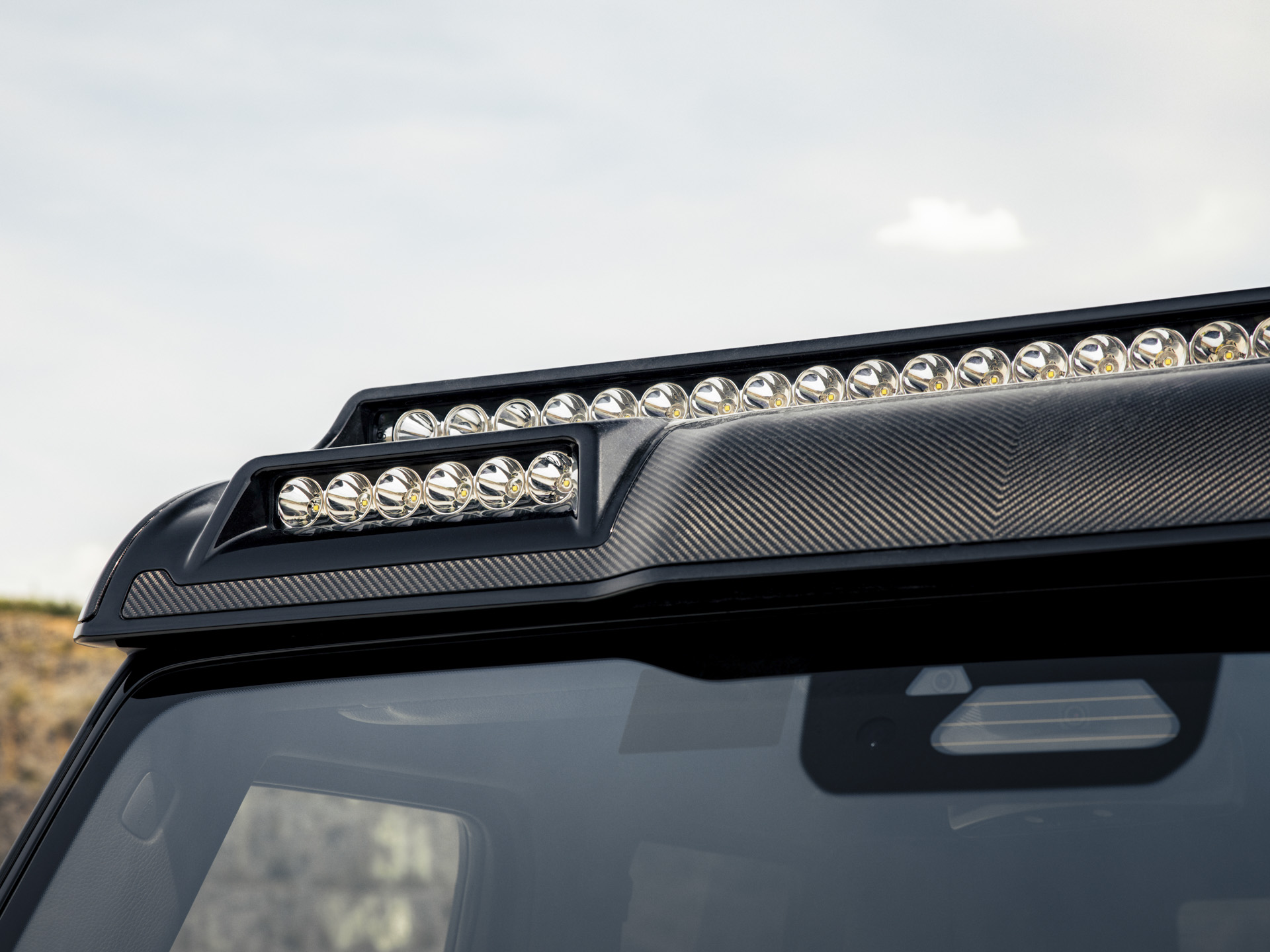 The roof rack and double-decker light bar, well, I won’t call them useful (good luck getting your duffel bags down from there!), but they are particularly interesting. The rack itself is a pretty sleek design. I like the little airflow-directing piece in the middle. I wonder if it helps keep the light from affecting the radar cruise control and collision-avoidance camera at the top of the windshield.