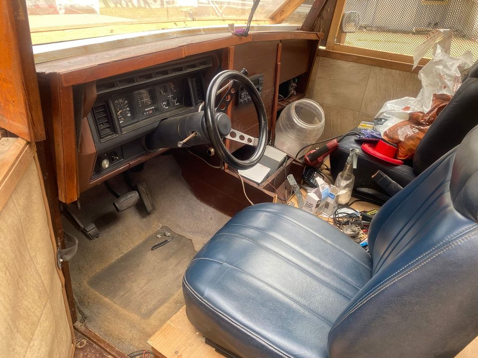 Overall, the styling and shape of the truck is an interesting mix of influences. There are some hints of Jeep in the vertical front grille, with the build retaining the rectangular sealed beam headlights from the F-150 front end. The bumper bar is a big slab-like thing, sure to hold up well in a contest against any modern plastic bumper. It also appears several windows may be built using some kind of mesh, so keep that in mind if you’re used to trucks that are sealed against the elements.
