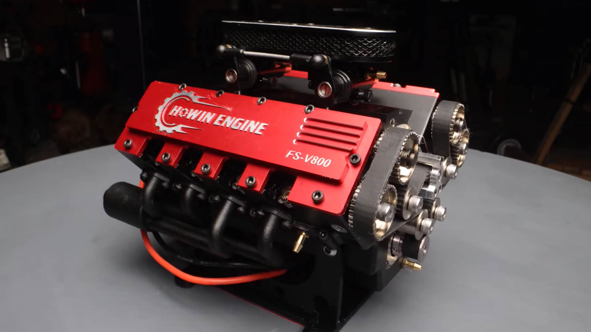 It’s a remarkably detailed, well-made engine that features dual carburetors, a mechanical water pump, and even small exhaust headers with little mufflers. Like an burly American V8, the Toyan FS-V800 uses a cross-plane crankshaft with a long stroke. Once given some fuel and hooked up to a radiator, the little Toyan engine fired to life without issue and revved freely. It sounds exactly like a miniature muscle car engine should but the ends of the mufflers were cut off at an angle in this video, to make it sound even angrier.