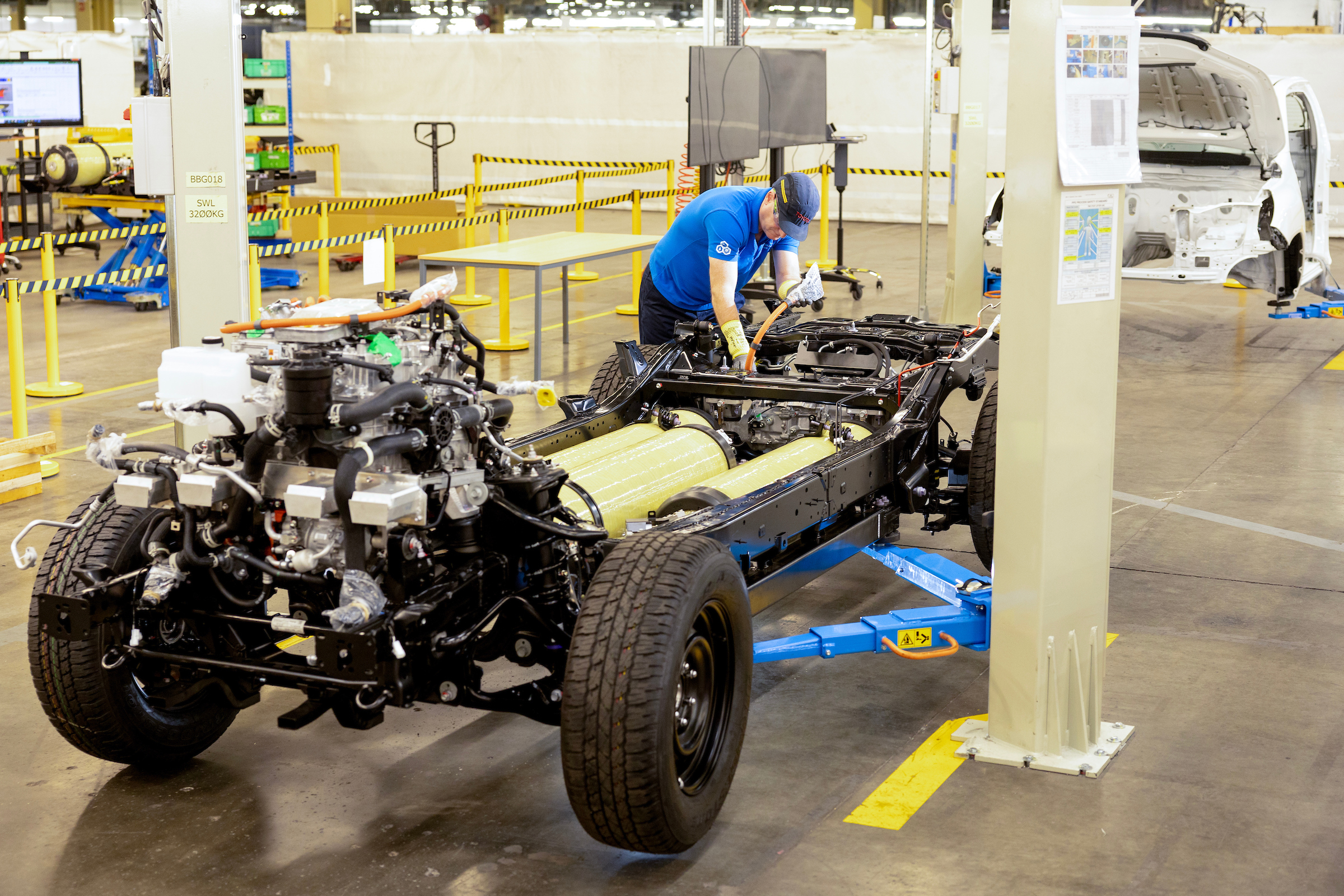 The hydrogen Hilux project began in early 2022 as a feasibility study between Toyota Manufacturing UK and Toyota Motor Europe. Funding for the project subsequently came via the Advanced Propulsion Center, a not-for-profit operation funded by the U.K. government. Design and development began in earnest in July last year, with Toyota relying on engineering help from consortium partners Ricardo, ETL, D2H Advanced Technologies, and Thatcham Research.