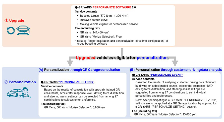 Part of the Kinto Factory strategy is performance upgrades for GR vehicles, beginning with the GR Yaris. The service already includes the Toyota Aqua (Prius C to us), Prius, the Alphard and Vellfire vans, and the Lexus UX and NX. For those more pedestrian cars, the upgrades include adding blind spot monitoring and parking sensors to vehicles that weren’t optioned with it. For the GR Yaris, it becomes much more technical and exciting.