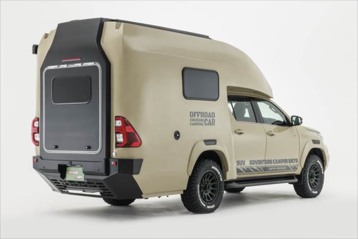 The rear camper is accessible via a full-height door on the outside of the vehicle. Access is also possible by crawling over the rear seats of the Hilux’s cab. This is a huge boon in the case of inclement weather, as it allows access to the camper quarters without leaving the vehicle.
