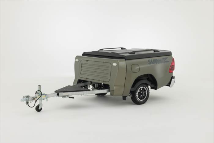 If you find yourself missing the Hilux’s bed, Direct Cars can help there, too. It will convert the Hilux’s removed rear bed structure into a trailer that you can tow behind the BR75.