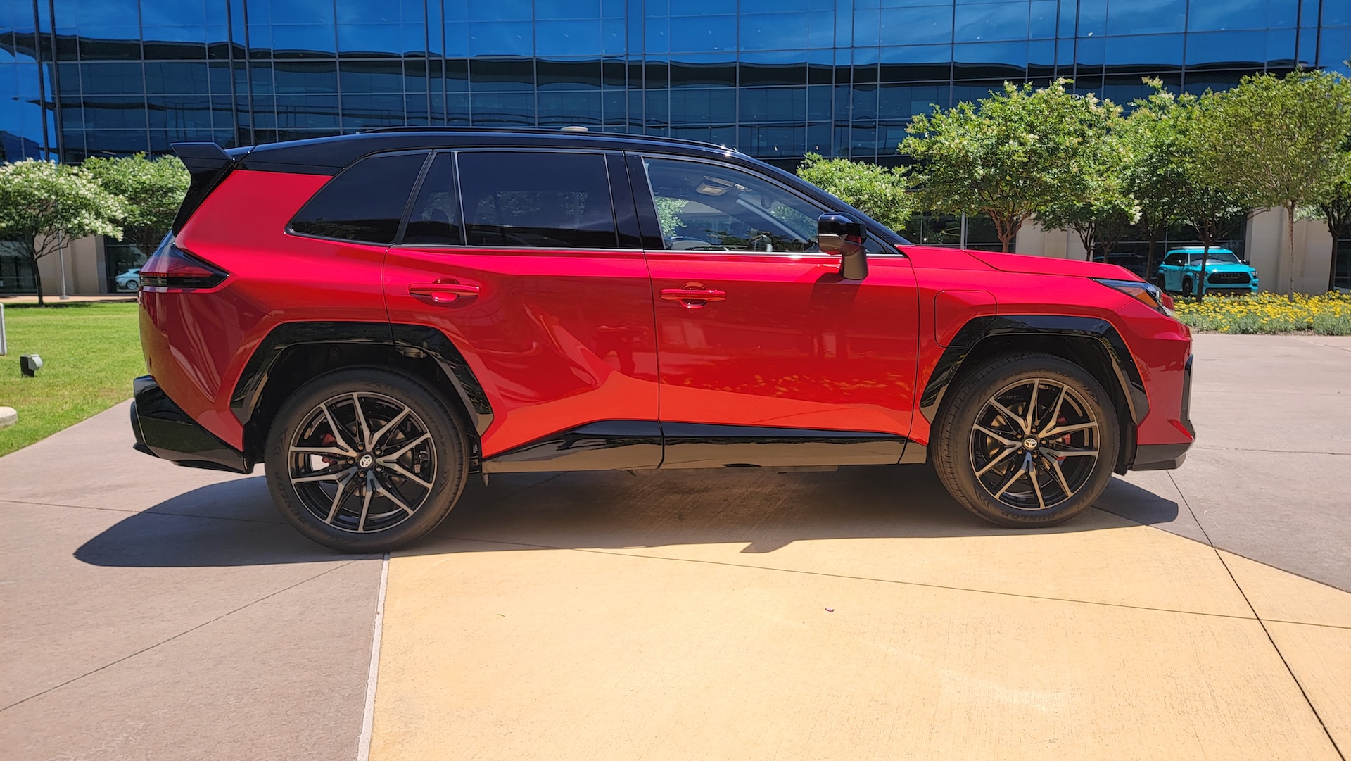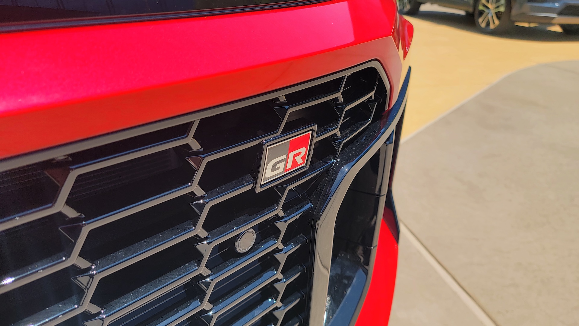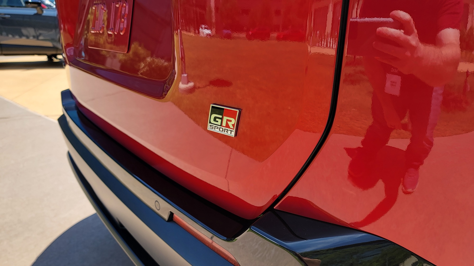 None of that is to say that the RAV4 GR Sport is wanting for more exterior accessories. Compared to the other RAV4 flavors, the GR Sport has an aggressive rear wing and slight chin spoiler, with piano black trim mimicking the GR Corolla’s revised front bumper. GR badges can be seen on that big front grille as well as on the tailgate, and this trim also offers the “exclusive pairing,” in Toyota’s words, of a Supersonic Red body (another GR Corolla similarity) with a black roof.