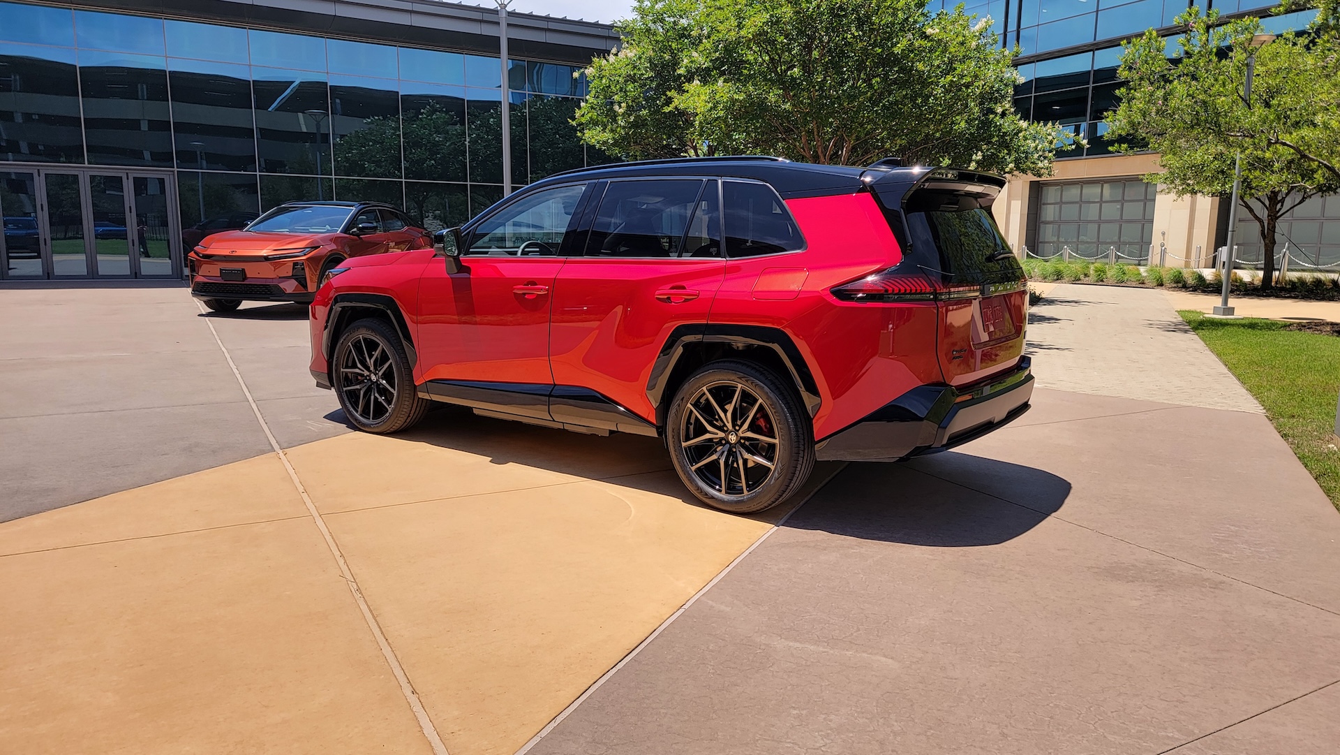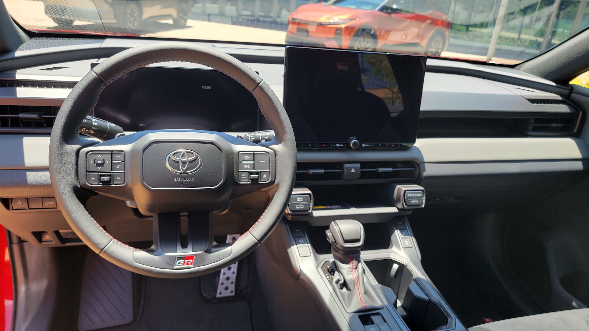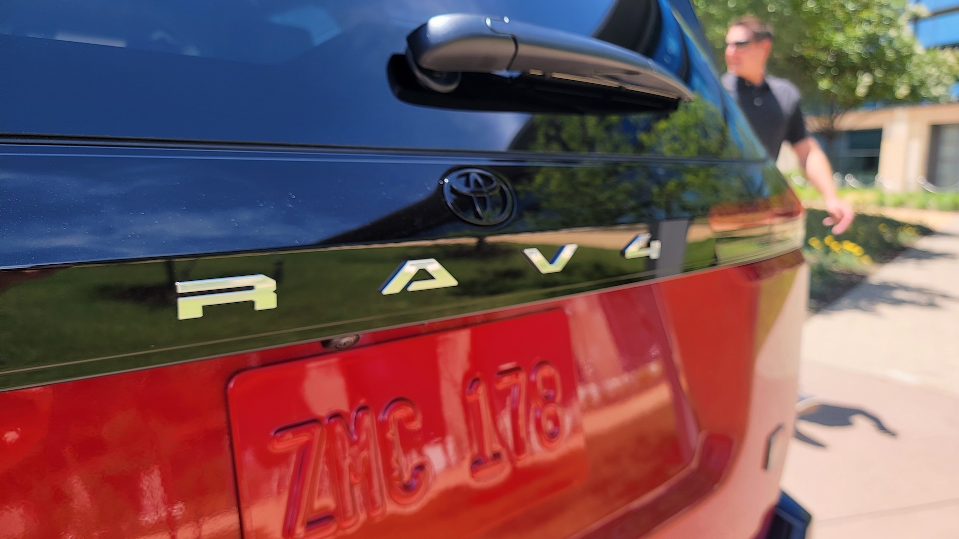 None of that is to say that the RAV4 GR Sport is wanting for more exterior accessories. Compared to the other RAV4 flavors, the GR Sport has an aggressive rear wing and slight chin spoiler, with piano black trim mimicking the GR Corolla’s revised front bumper. GR badges can be seen on that big front grille as well as on the tailgate, and this trim also offers the “exclusive pairing,” in Toyota’s words, of a Supersonic Red body (another GR Corolla similarity) with a black roof.