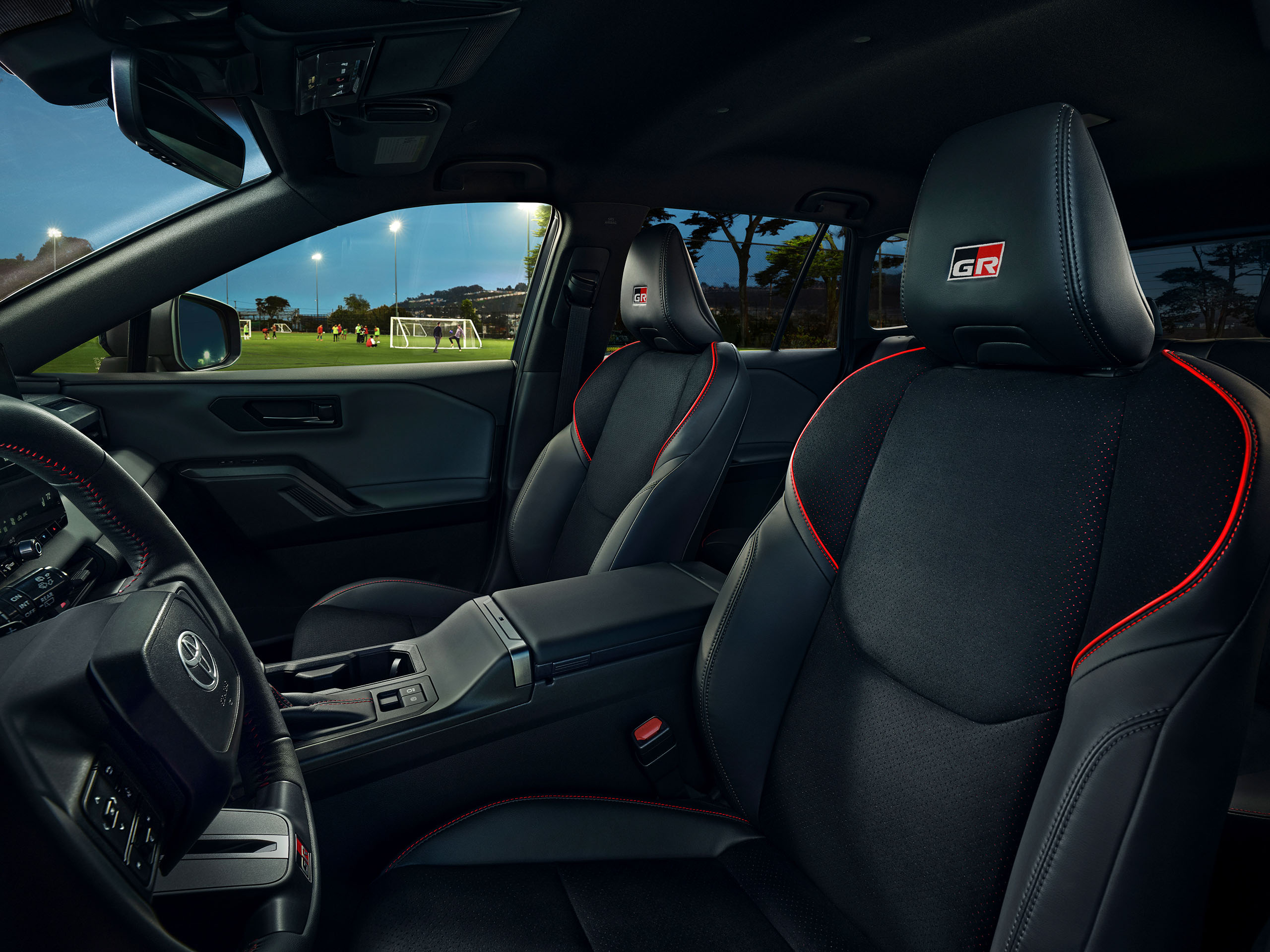 For starters, Toyota has given this trim the new RAV4’s most potent powertrain: a 2.5-liter four-cylinder paired with two electric motors for a total of 320 horsepower, put to the pavement through all four wheels. The GR Sport model isn’t more powerful than the other plug-in RAV4s, but that’s OK, because it has plenty of other exclusive tweaks that more than make up for it. Besides, 320 hp is nothing to sneeze at.