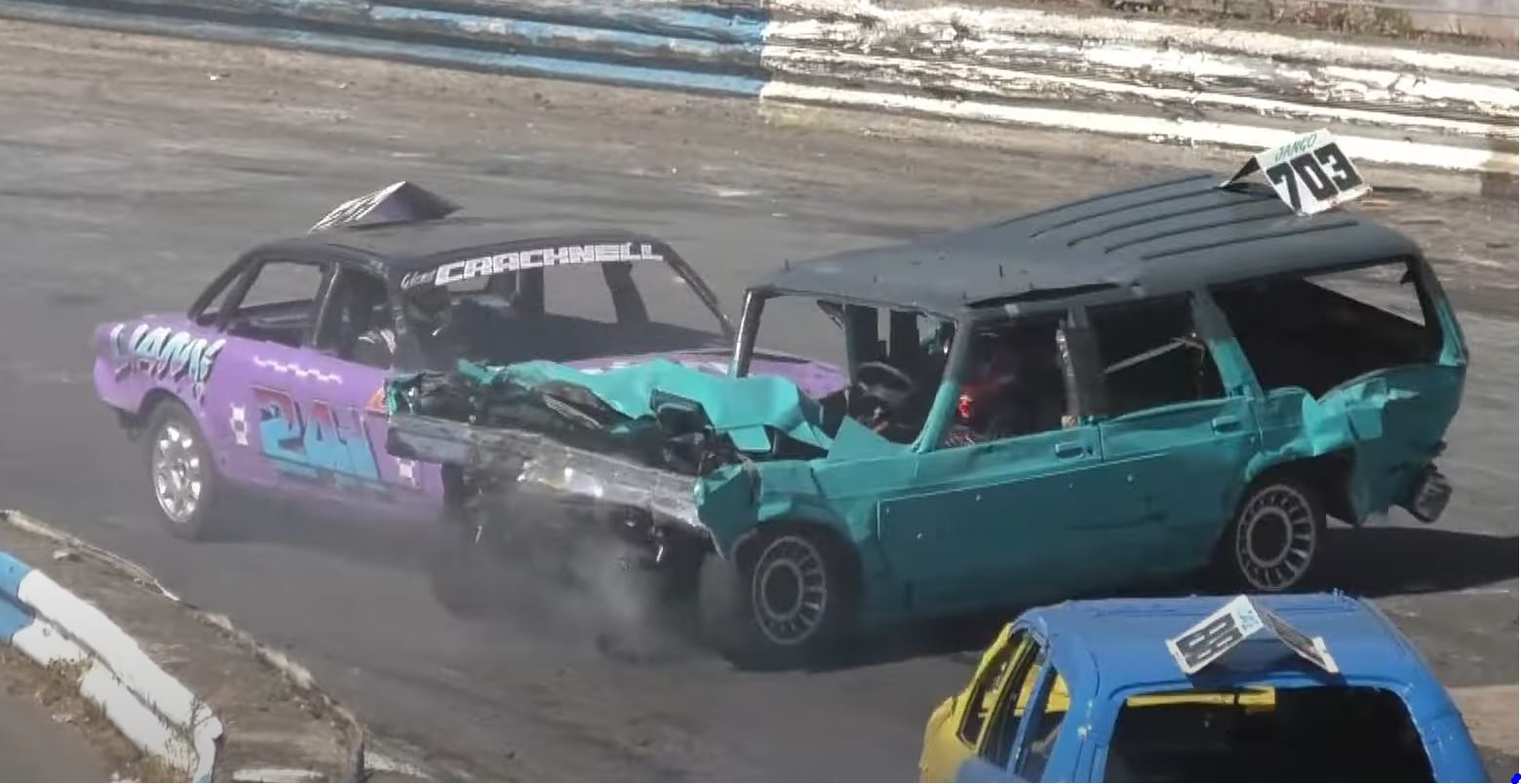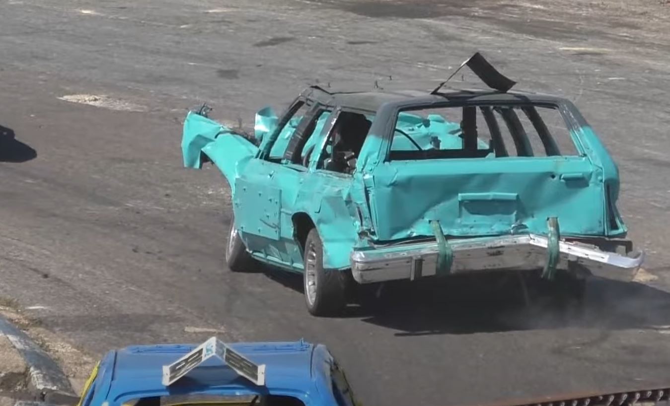 Stealing classic cars are bad; killing them at a demolition derby is worse. That’s allegedly what happened at the final event at Ringwood Raceway in St. Leonard, U.K. this weekend, where a 1985 Ford LTD wagon and a 1965 Pontiac Grand Prix appeared in matching shades of spray-paint teal, shortly after extremely similar cars were stolen in the area just a month prior.