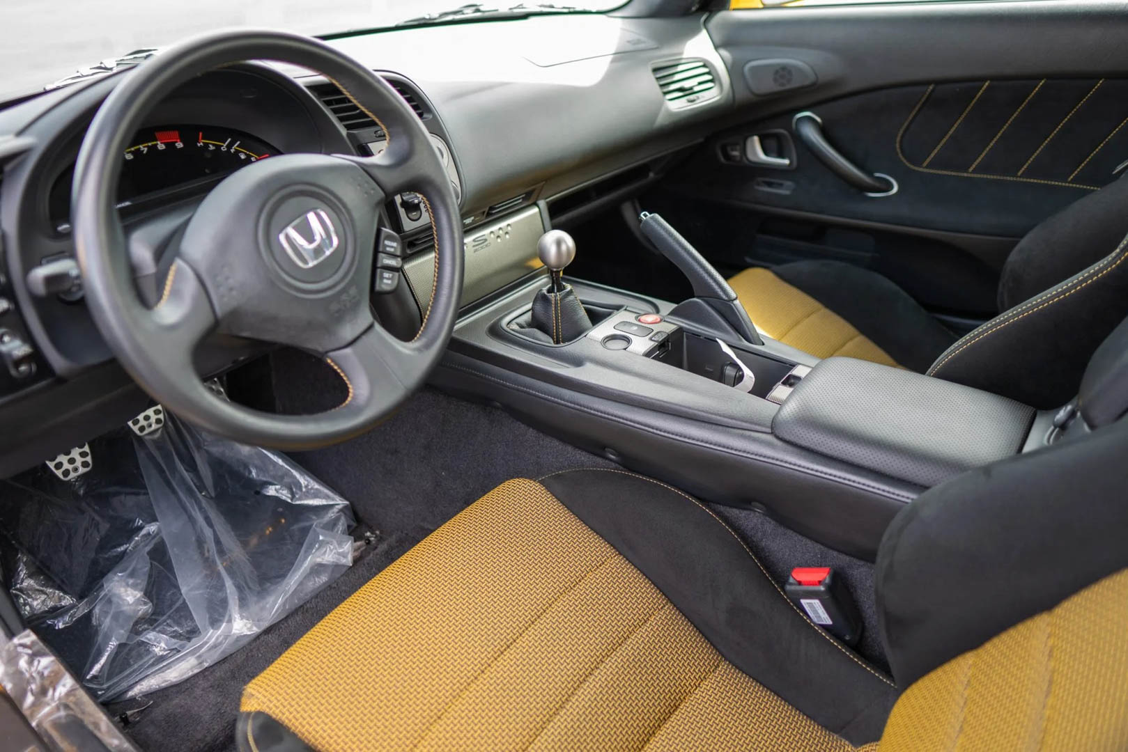 This specific car came with the radio and air conditioning options, which bumped its total price to $38,465, including its $670 destination fee. It wears a Rio Yellow Pearl exterior paint, with a Yellow/Black interior. Stock 17-inch wheels are wrapped in Bridgestone Potenza RE070 tires. The 2.2-liter naturally aspirated four-cylinder engine is unchanged from the standard S2000, so it still makes 237 horsepower and 163 lb-ft of torque.