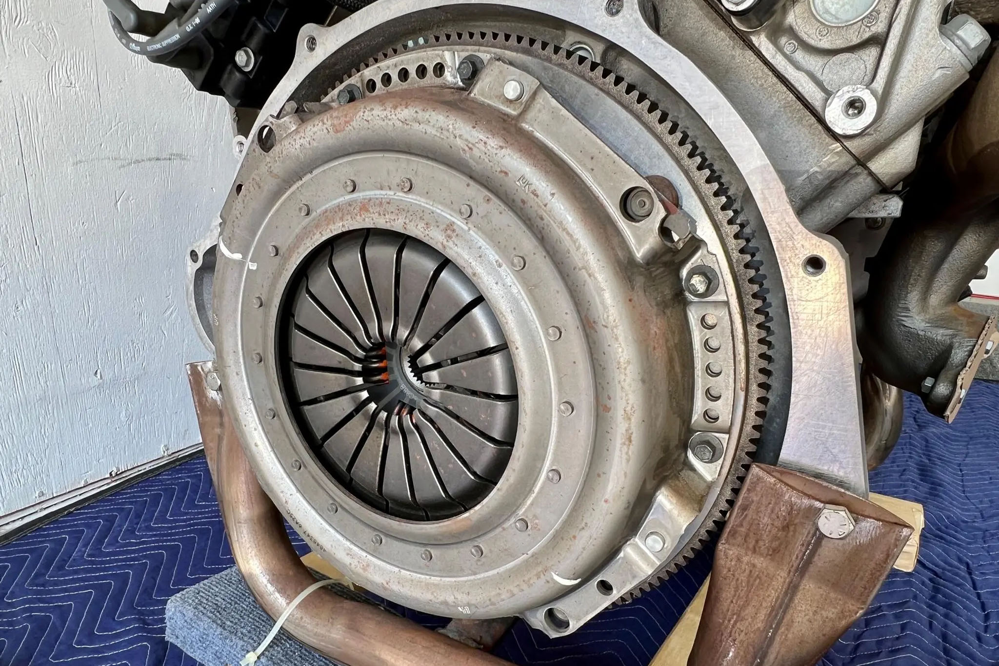 The engine has been more or less ready to install in a car since it was delivered to the dealership in the 1990s. It not only has a complete front dress, intake manifold, and exhaust manifolds, but it also has a clutch, pressure plate, and ignition system already installed as well. It’s been mounted to a custom stand for many years, although the original plastic crate it was shipped in is also included in the sale.