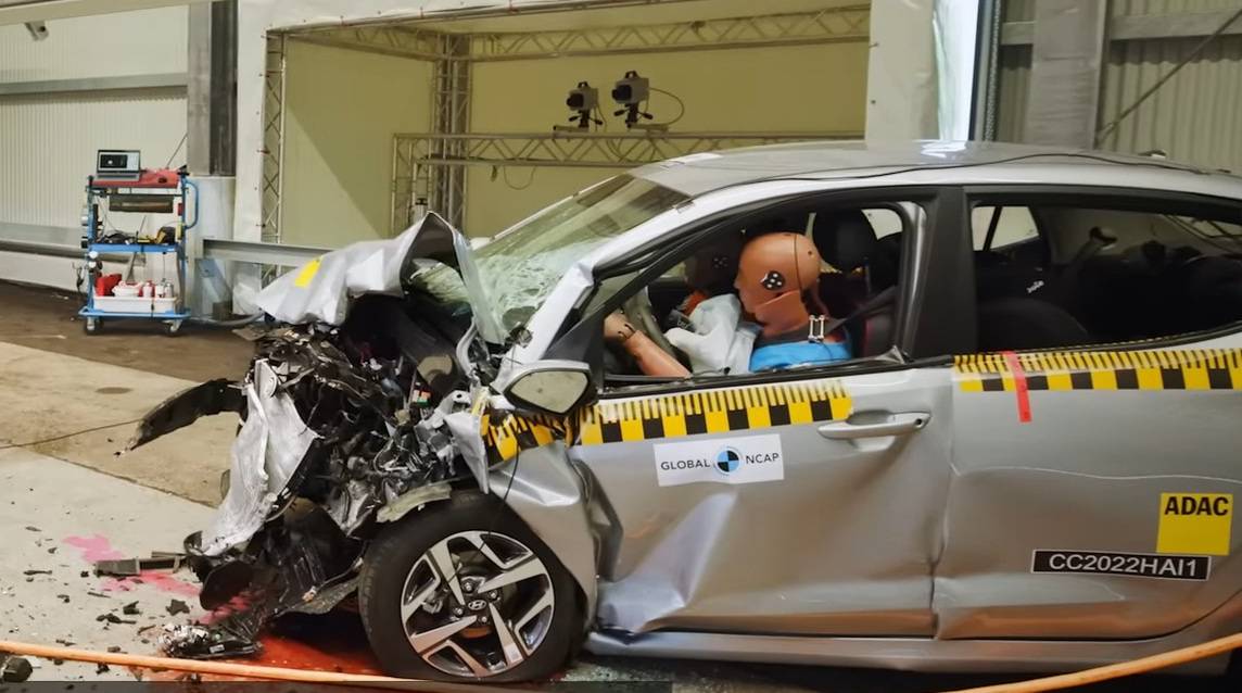 In the Mexican market Grand i10, the body shell shows significant deformation after the impact. The A-pillar is badly bent and the driver’s door is crumpled, while the steering wheel has also been pushed back towards the driver. There’s also little protection from the sides as only frontal airbags are fitted. “The level of protection in the occupant zone is really rather poor, with a high risk of fatal or serious injury,” said David Ward, Executive President of Global NCAP.