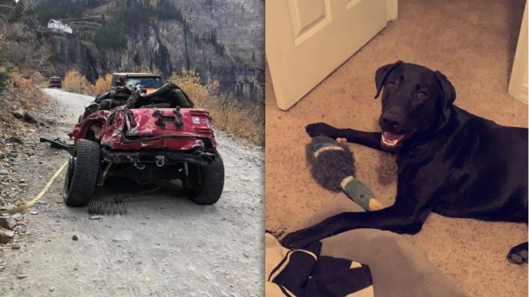 Four emergency response agencies, as well as the U.S. Forest Service, reported to the scene. The ravine leading to the crash site was steep and overgrown. Another dog was spotted at the crash site, but there was still no driver. As a sheriff’s deputy was searching for a way down, he heard someone call for help. The missing driver had managed to crawl 100 yards away from his wrecked vehicle, where he slept overnight. Whew, he was alive and responsive. That was the good news. But rescuers still had to figure out how to get him out of there in order to provide proper medical care.