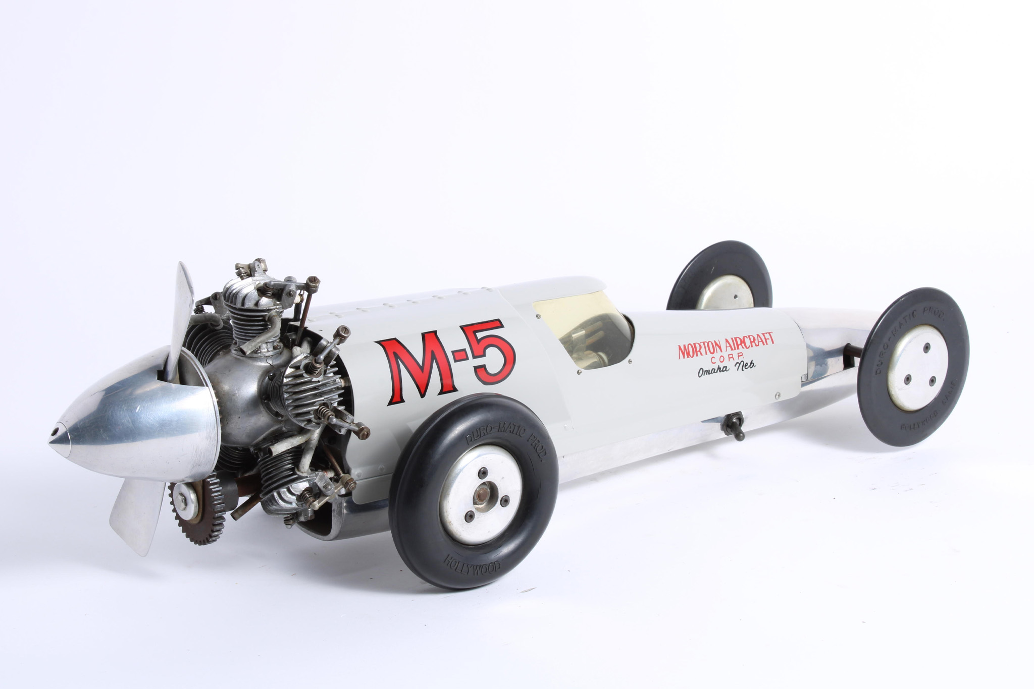 It seems like more than one of these tether cars with M5 engines was built by a skilled craftsman named Don Edmunds, but similar to the Morton M5 engine, it’s hard to nail down an exact figure. What we do know is that the Morton M5 was the first miniature radial ever built for model airplanes, and combining it with four wheels and such a unique space-age body was a great decision.