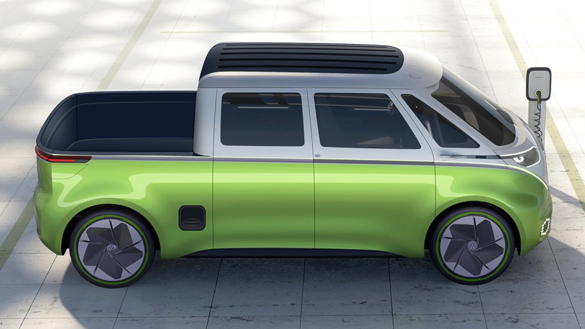 As for the pickup concept, VW says the render is an “unseen design draft” from earlier in the development process. It bears a strong resemblance to the ID Buzz Cargo concept shown in 2018, which was VW’s idea of an electric work van. Both lack the flap on the body panel just behind the right rear wheel that’s seen on the European production models, for example.