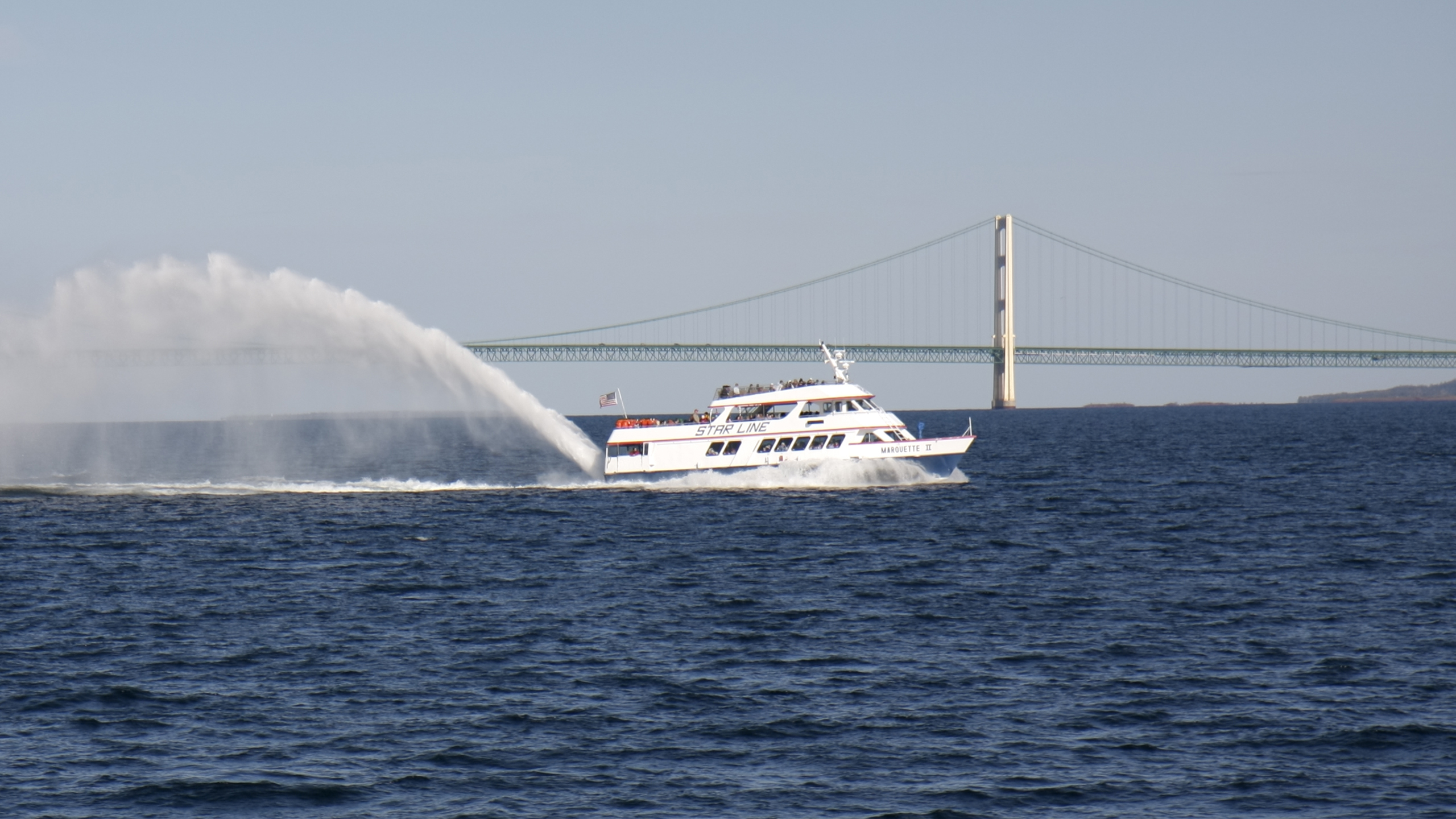 The ferries to Mackinac Island are the primary means of transportation for the island’s 500 permanent residents, which is located on the northern tip of Michigan between the upper and lower peninsulas of the state. The island is in the Straits of Mackinac, in Lake Huron, and near Lake Michigan. The ferries serve roughly 750,000 people each year as a popular tourist attraction, with more than 100 round trips daily.