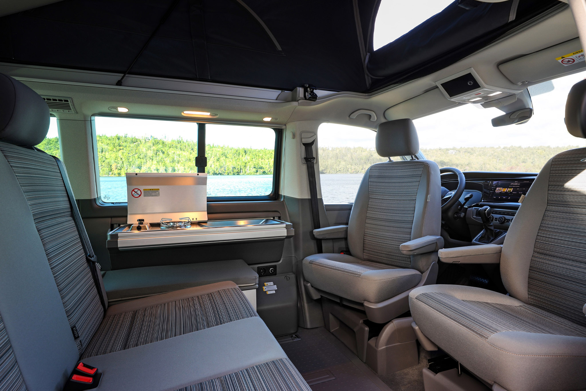 It has a small kitchen, a pop-up top, and fold-down seats to sleep up to four. It’s powered by a 150-horsepower 2.0-liter turbo-diesel engine powering to the front wheels through a 7-speed automatic dual-clutch transmission.