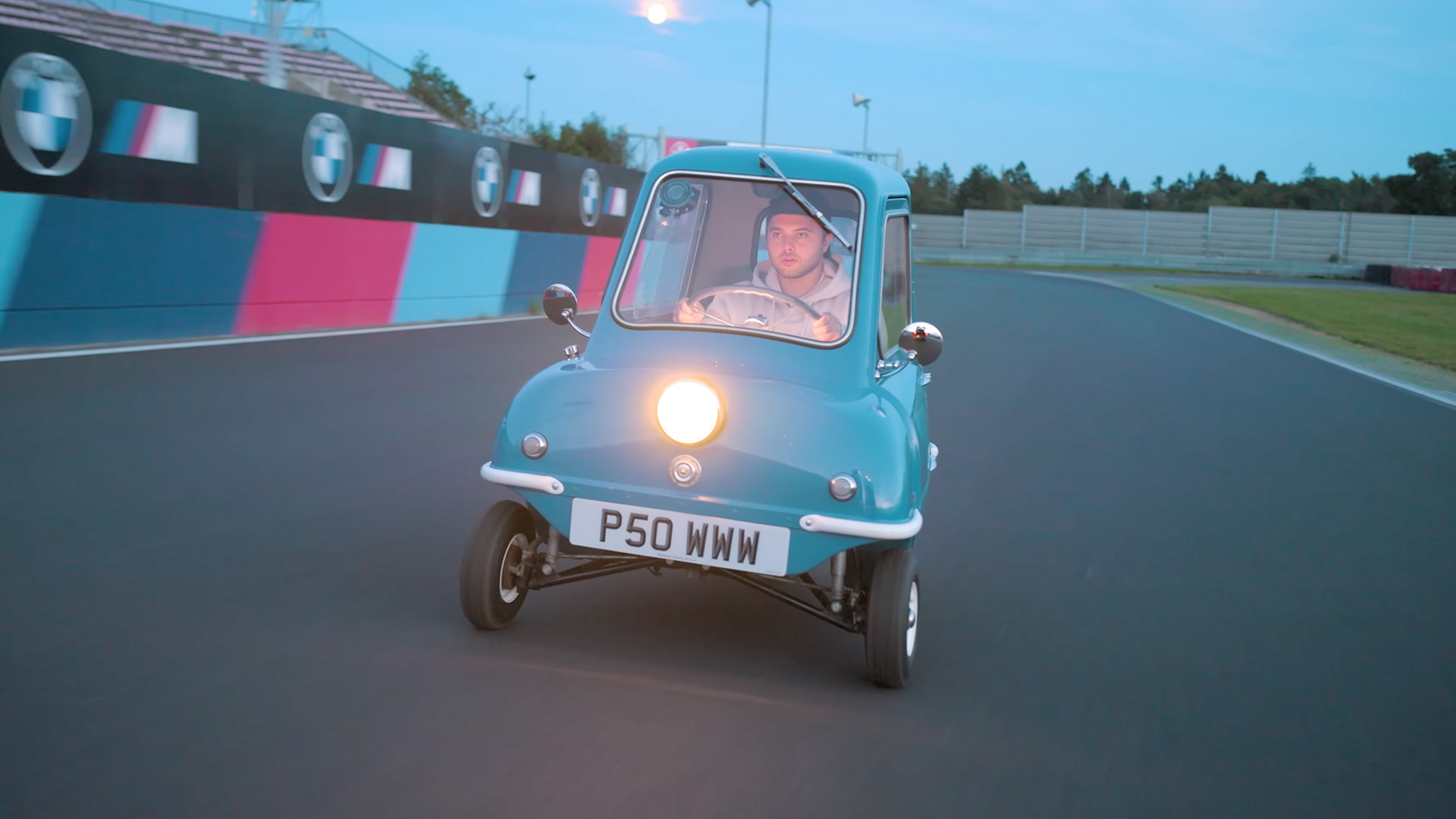 Silly cars lapping the Nürburgring Nordschleife is usually an activity left to the virtual world. Sure, tourist days often include buses and vans alongside supercars, but there’s a limit to the slowest vehicle permissible at the ‘Ring. If you wanted to circle the Green Hell in something ridiculous, a la Gran Turismo, you would have to rent the track out. This is exactly what Quadrant did to attempt a lap in a Peel P50.