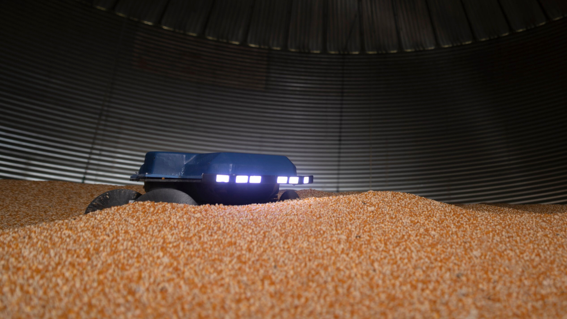 Grain such as soybeans, corn, and wheat require storage in giant metal receptacles called grain bins. They, like everything else on a farm, must be maintained to keep the contents fresh and avoid insects and mold. Getting inside a grain bin to stir it up is a hazardous undertaking for reasons I’ll explain in a minute. As an alternative, a father-son team in Omaha, Nebraska came up with an agricultural robot that acts like an off-roading Roomba on a small mountain of grain.