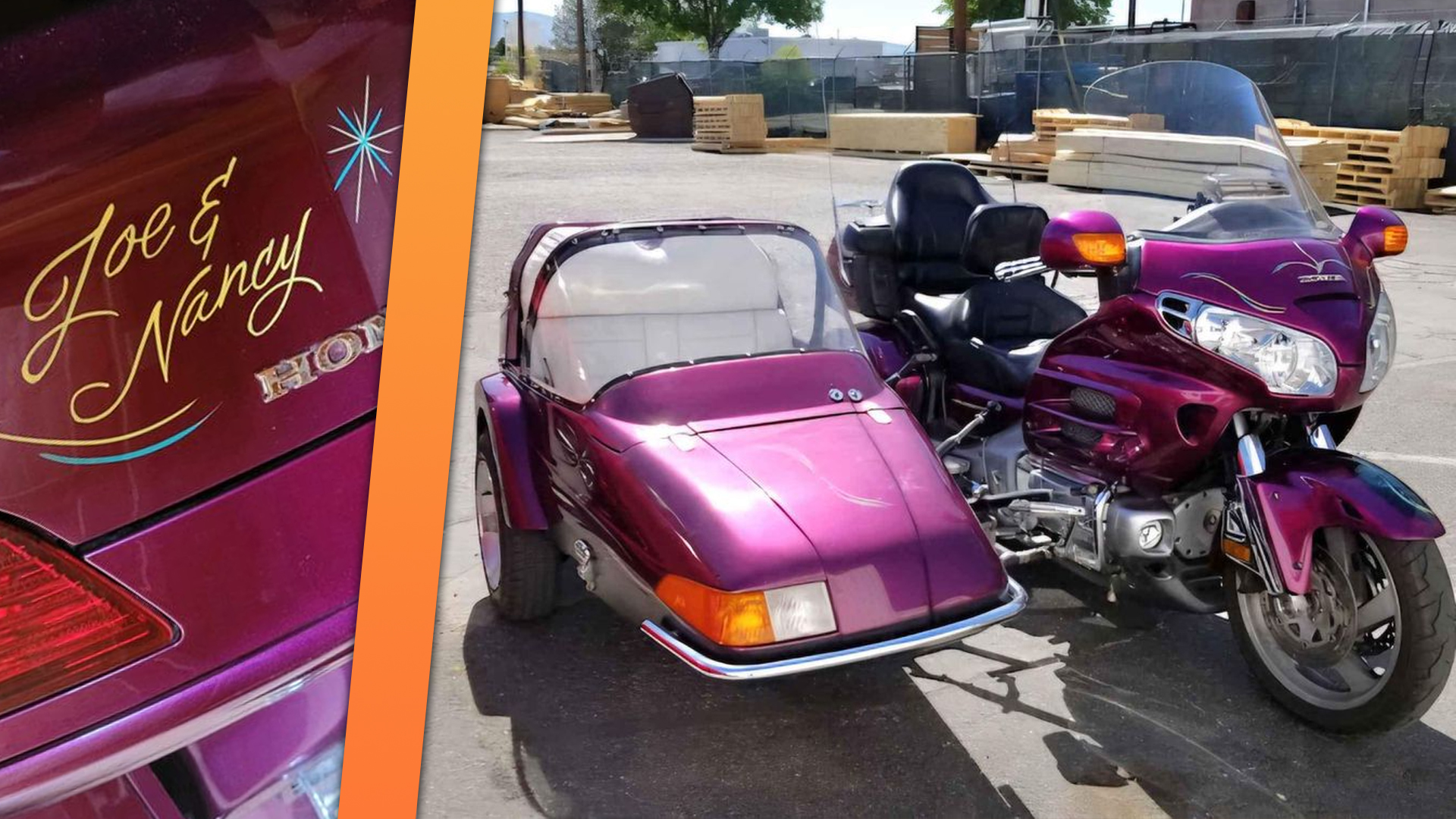 The Gold Wing is a staple of American highways, combining the breeze of a bike with the comfort of (almost) a car. You often see them decorated with cute customizations or maybe an extra cargo box for a long haul. This one has cargo boxes, and a trailer hitch, and a freaking sidecar, and delightfully ornate airbrush-style self-referential art. It’s the most Gold Wing Gold Wing. It’s the final boss of the breed.