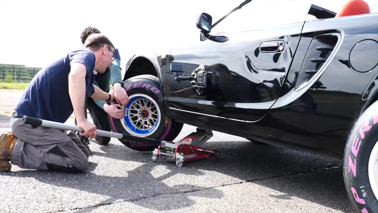 It’s not the first time Driven Media has experimented with weird and whacky tire setups. The team has previously run F1 tires on a Caterham, while also testing their own airless tires made out of hardware store parts, with amusing results.