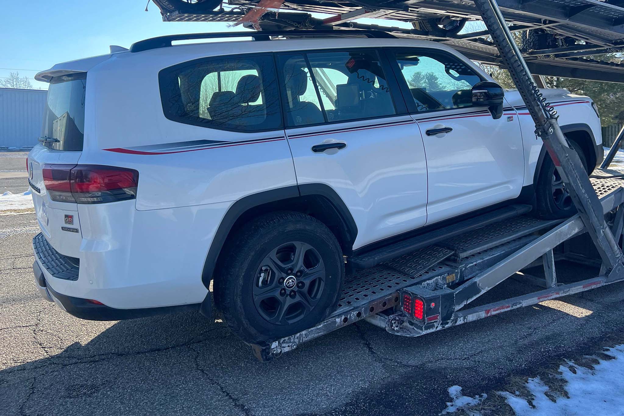 Photos of the rig were shared on Facebook by Jorge Alvarez, who I messaged directly. He explained that the GR Sport model was on the back of a car hauler in Mishawaka, Indiana. That’s where he works at a Lexus dealer, and while he thought it might’ve been a Sequoia at first, he then realized it was the forbidden 4×4.