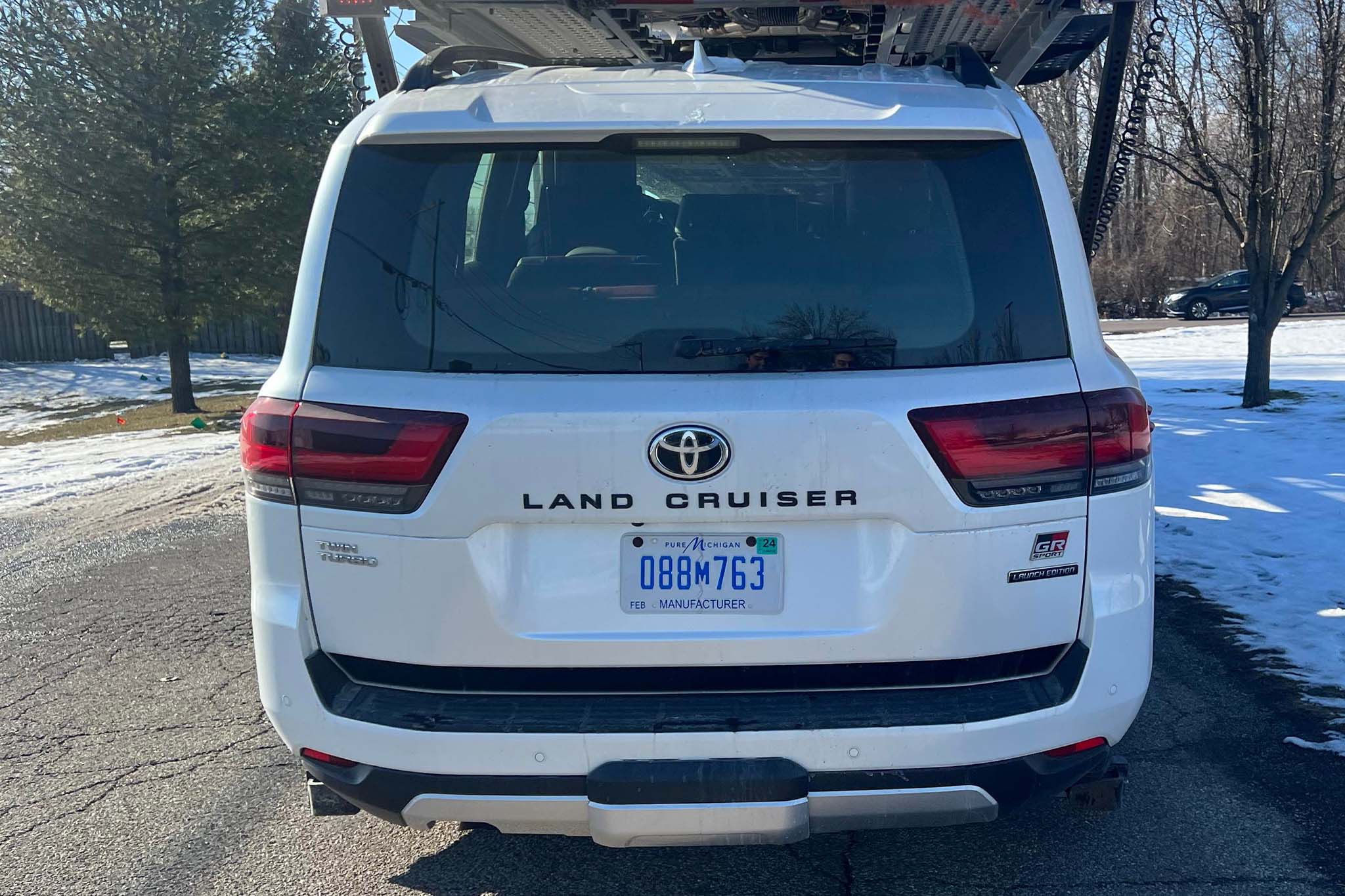 “Immediately I pulled over and ask the [driver], ‘What’s with the Land Cruiser?’ And he just mentioned it was a test vehicle,” Alvarez says. “We are not far from Chicago so it could definitely be a car headed to the auto show. The BMW on top also had manufacturers plates out of Michigan.”
