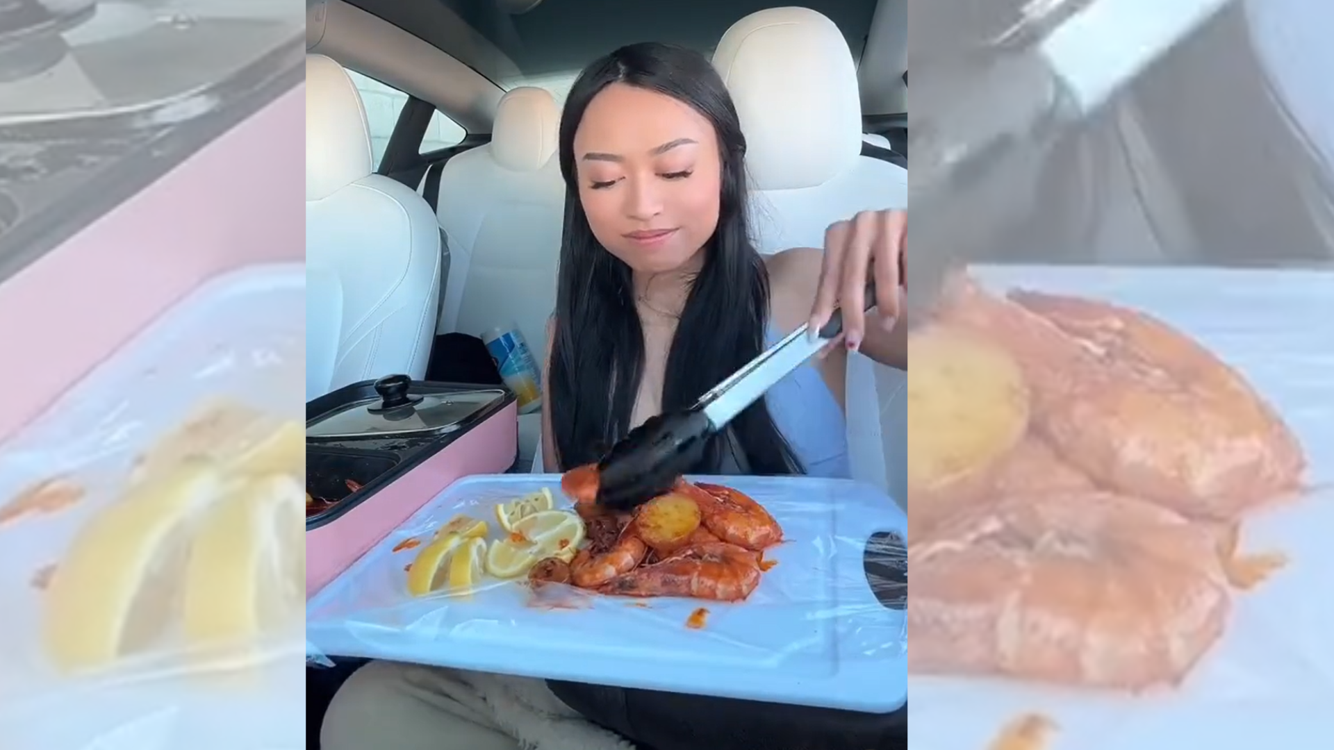 As of late, Californian Alyssa Lauren Manaig has been posting videos of herself cooking inside her white Tesla Model 3 via her Instagram page. If I had to guess, I’d say she probably received a portable 2-in-1 electric hot pot and grill as a promotional gift and needed to make a fun and catchy vlog about it. Manaig came up with a Muskmobile cooking series and her first video went viral, generating 8.8 million views and counting.