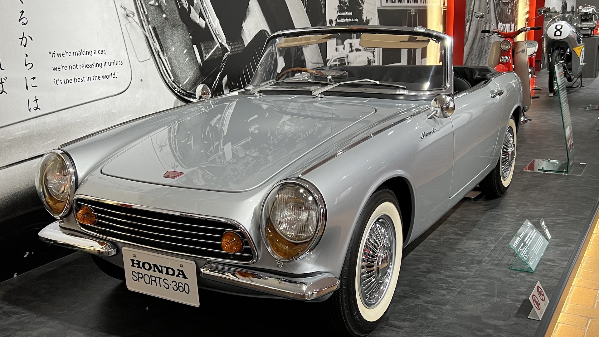 One of the first cars you’ll encounter on the main floor is a race car that founder Soichiro Honda raced along with his brother back in 1924. The Curtis racer is displayed in a gorgeous silver finish with brown-leather hood straps and red wheels. Later down the line, once you get through the company’s first vehicles (all motorized bikes), you’ll get to the cars. There are amazing examples of Honda’s early-day prototypes, its first-ever truck the 1963 T360, and its first-ever car, the 1962 Honda Sports 360.