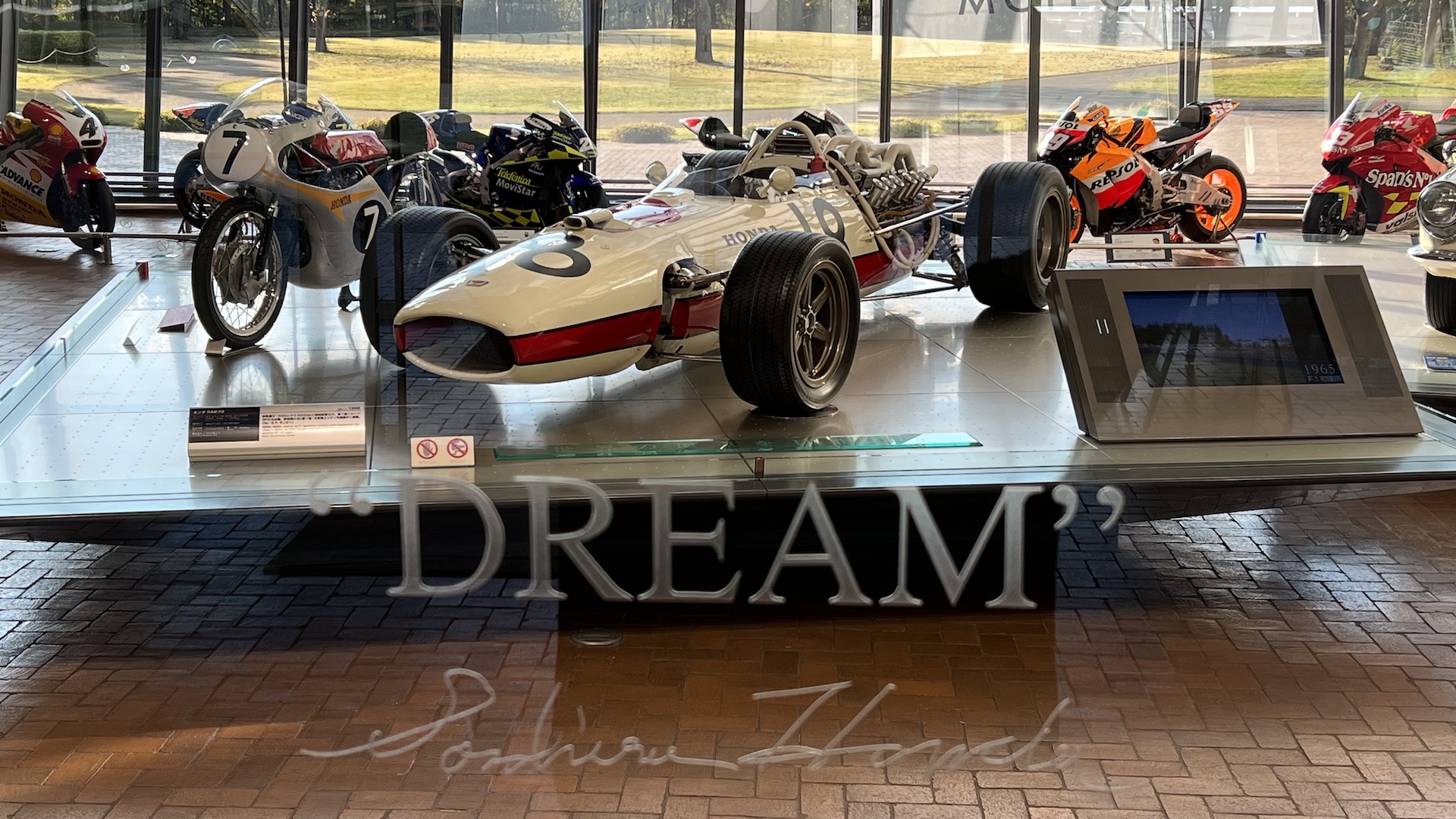 Last but not least, there’s the Honda RA272, Honda’s first-ever winning F1 car. It won the Mexico Grand Prix back in 1965 and become the only Japanese race car to ever win in F1. It was Richie Ginther behind the wheel who led every lap of the final race of the season to ink his name in the history books. This car would also become a trendsetter, as it was the first Honda to wear Championship White, a paint color that’s still famous to this day and reserved for only Type R models. A pristine example is located in the lobby for guests to see immediately upon arrival. It’s strategically positioned behind a large piece of decorative glass etched with the word “DREAM” and Soichiro Honda’s signature.