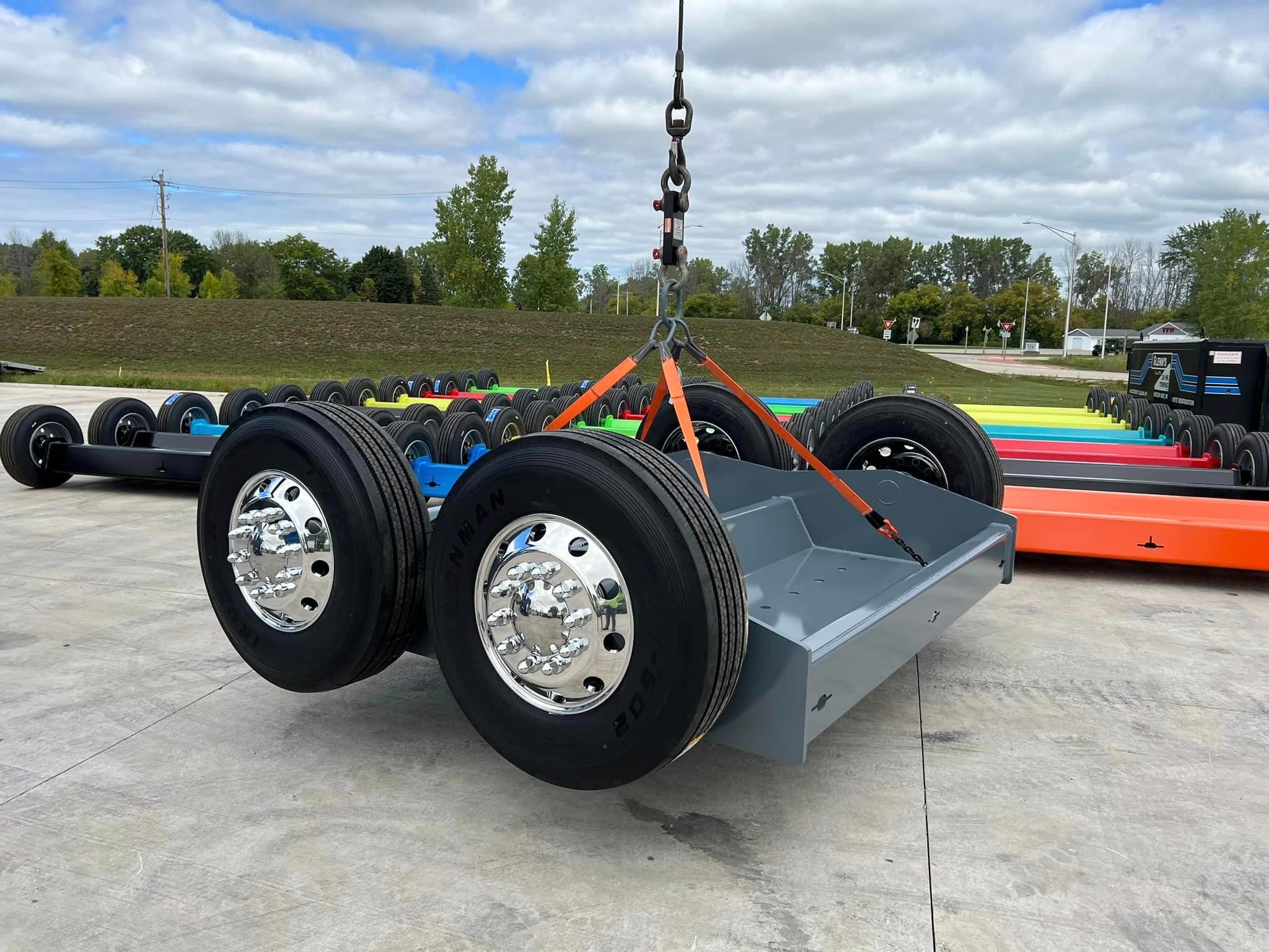 As you’d expect, this requires some seriously strong hardware. Henninger explained that the axles are built in-house out of solid 7-inch steel round stock. Measuring 103 inches wide on the inside and 134 inches wide on the outside, the dollies boast a big footprint as well as an empty weight of 4,200 pounds. Clearly, these are meant for those big jobs you hear truckers talking about at the Denny’s inside Flying J.