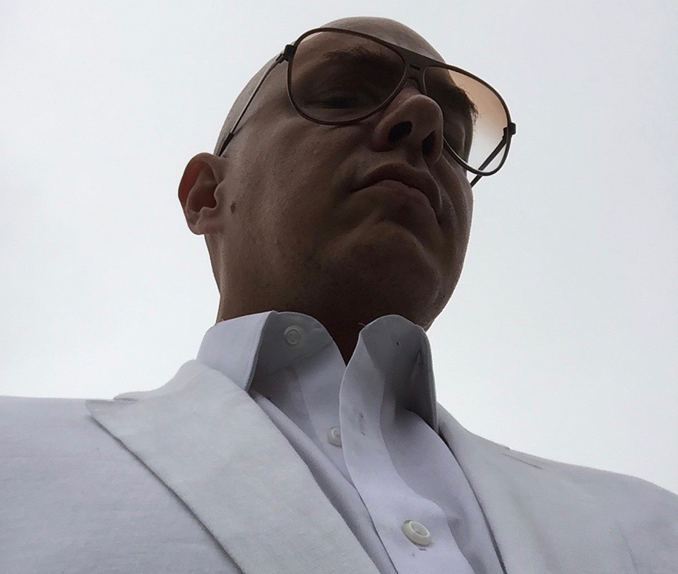 …call it “Concierge 2” or “Cuban Exile Son”, instantaneously switchable to “Pitbull” by removing the tie and switching to a pair of 1972 Italian “Revue” glasses with brown fading: