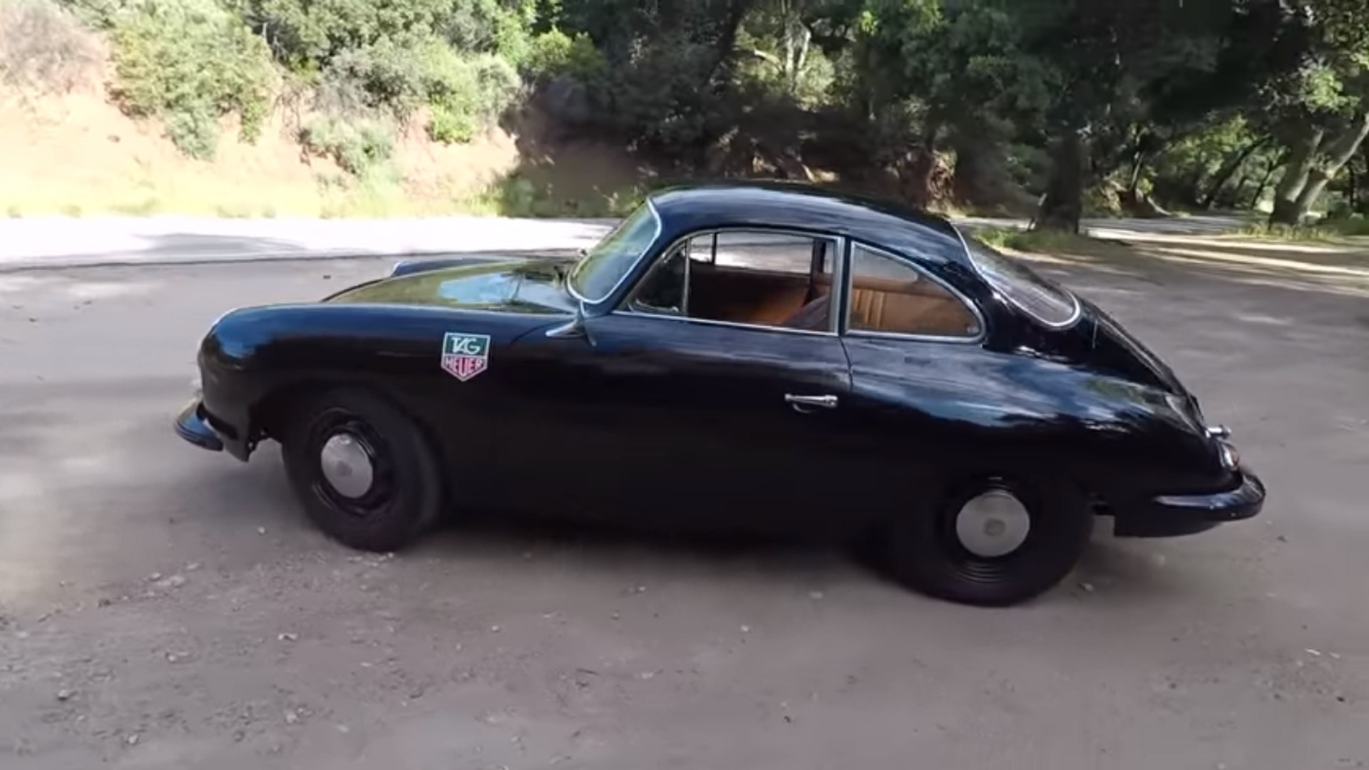 This little coupe looks absolutely the business with a recent black re-paint, some trim delete, and some black paint on the traditionally chrome steel wheels makes this 356 stand out in a crowd. This is an old-school 356 hot rod looking car with some nice color leather inside and some Heuer rally clocks on the dash. It takes a few cues from the ‘outlaw’ culture and some from the pure restoration folks and mixes them into a great looking car. Based on the video, it’s a snap to drive, too.