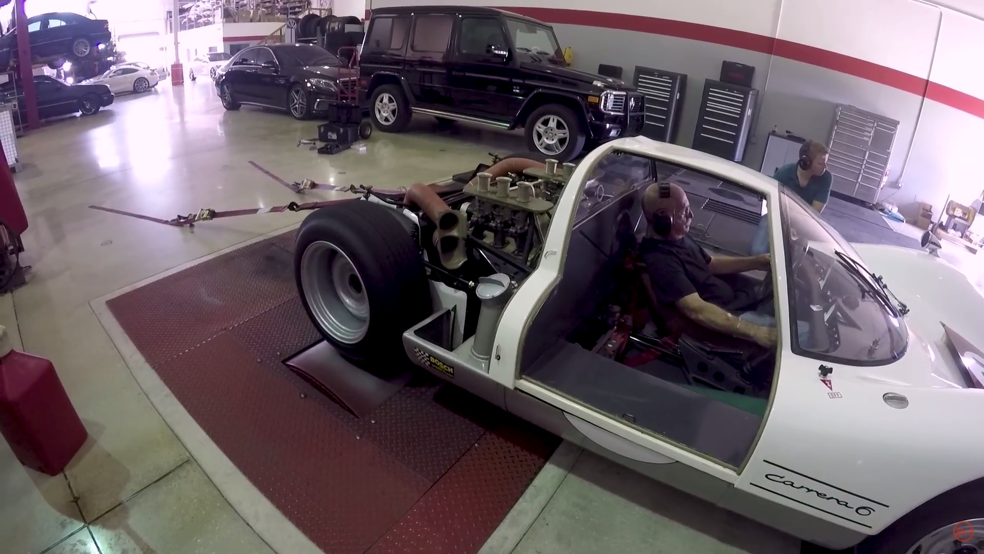 In this case, they’re running a gloriously naked Porsche 906 Carrera 6 on the dynamometer to check how healthy the engine is. The plastic fantastic fiberglass flyers of Porsche’s mid-1960s are some of our personal favorites. Taking over where the 904 left off, Porsche built a more svelte body and installed a more powerful 2-liter flat-six engine in the back (yes, we realize that some 904s were also equipped with flat sixes, but not many). That same 2-liter with huge velocity stacks on high-butterfly carburetors was installed in 1968’s 911R racer as well. It’s a wonderful engine, and sounds like angels descending from on high.