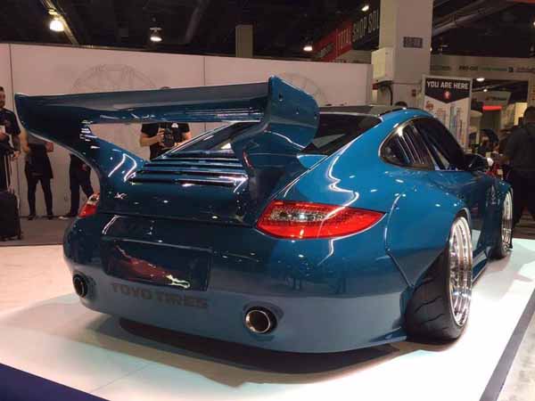 If you’re in Las Vegas for SEMA this week, stop by the Toyo Tires booth to check out this 997. Friend of the site, Jason Connor, is there this week, and sent us these up-close-and-personal photos of this interesting and beautifully-blue Porsche.